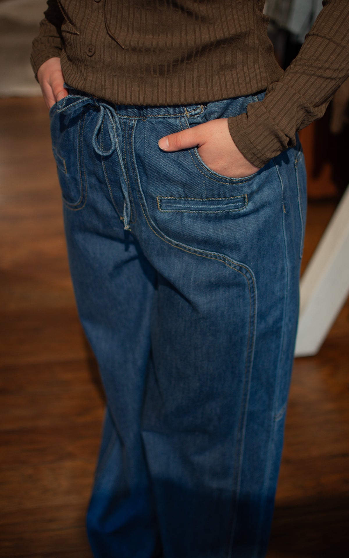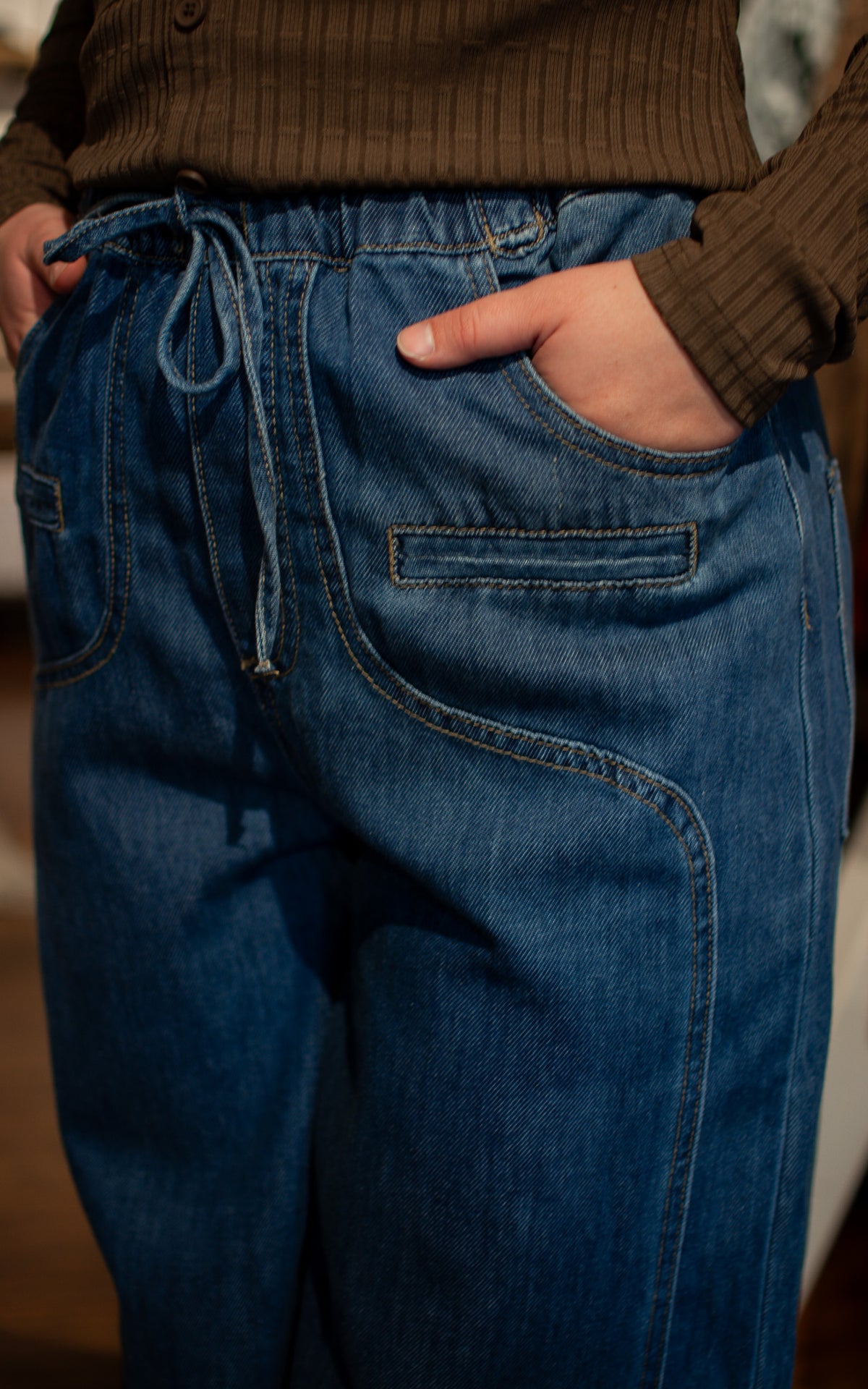 Step into the groove with the Flora 70’s Denim Pants! These dark wash, drawstring pants flow with fun 70’s-inspired details that bring vintage charm to your modern wardrobe. Relaxed and playful, they’re perfect for dancing through your day with effortless style.