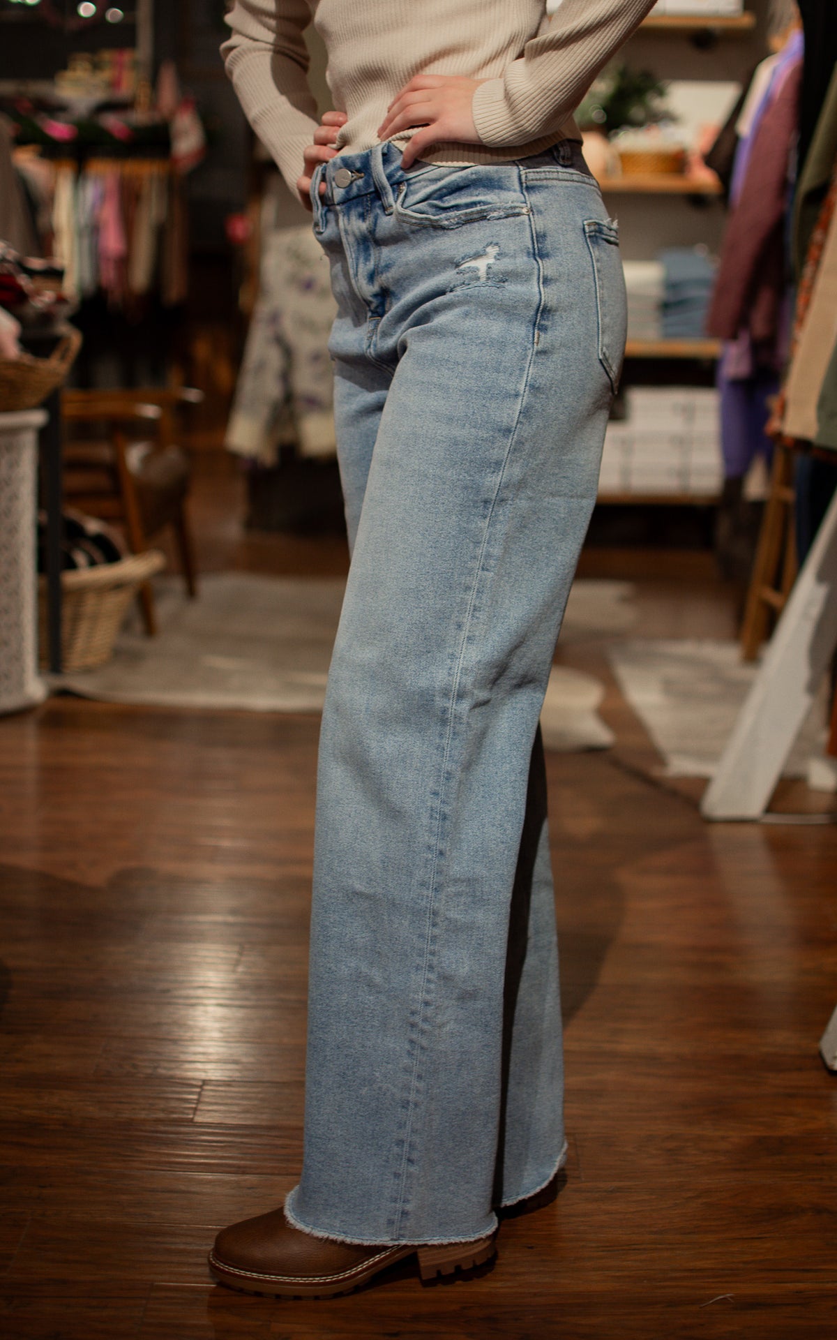These Wide Devil Mica Jeans are a devilishly stylish addition to your wardrobe. Featuring a high waist, frayed hem, and a wide leg fit, they offer so much stretch for the perfect fit. Don't be afraid to show off your playful side with these quirky and comfortable jeans.