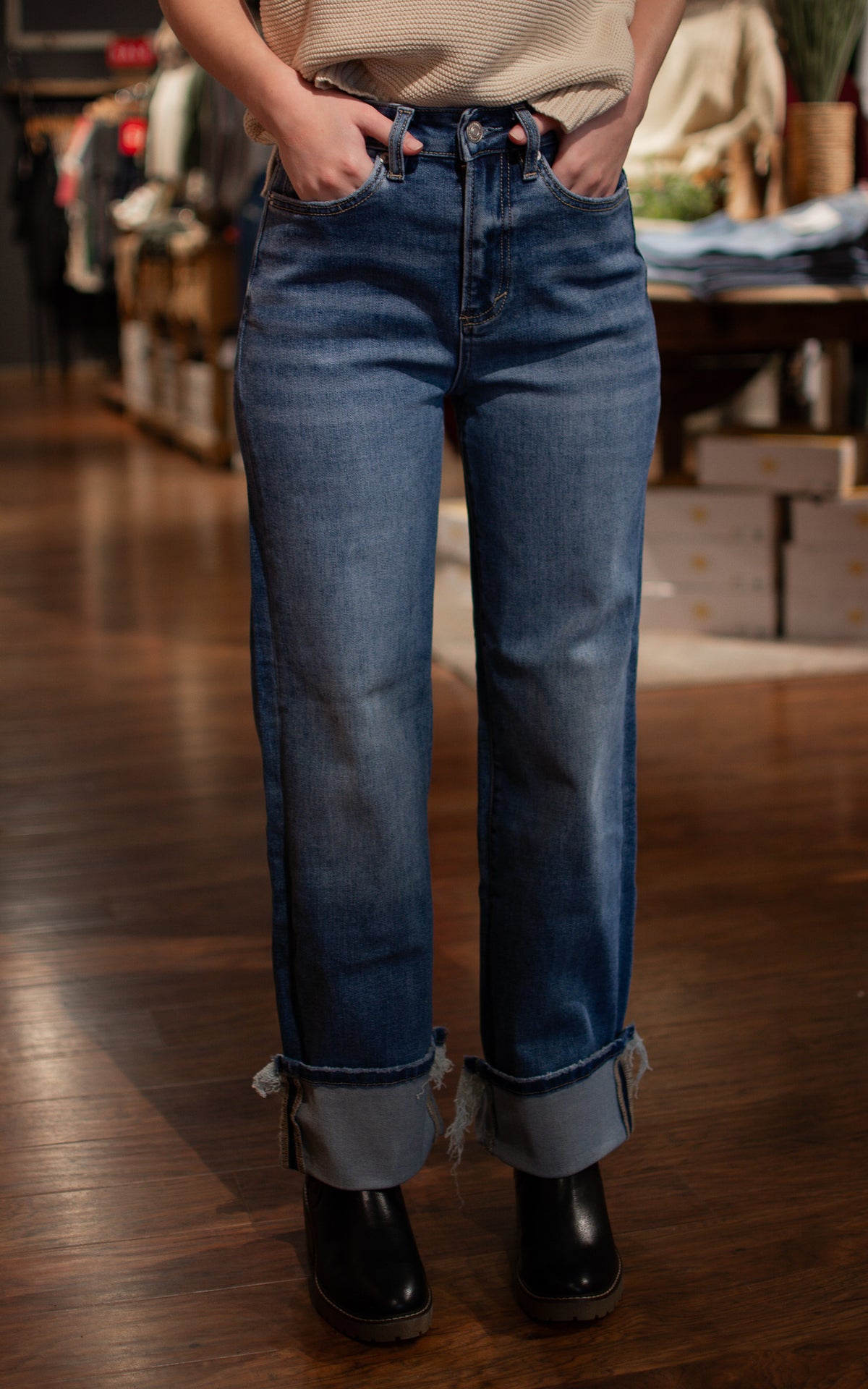 Score a fashion touchdown with the Penn Blue Relaxed Cuff Mica Jeans. These straight leg relaxed fit jeans boast a longer length, perfect for a taller frame or for a stylish oversized cuff. Score some serious style points with these trendy and versatile jeans.