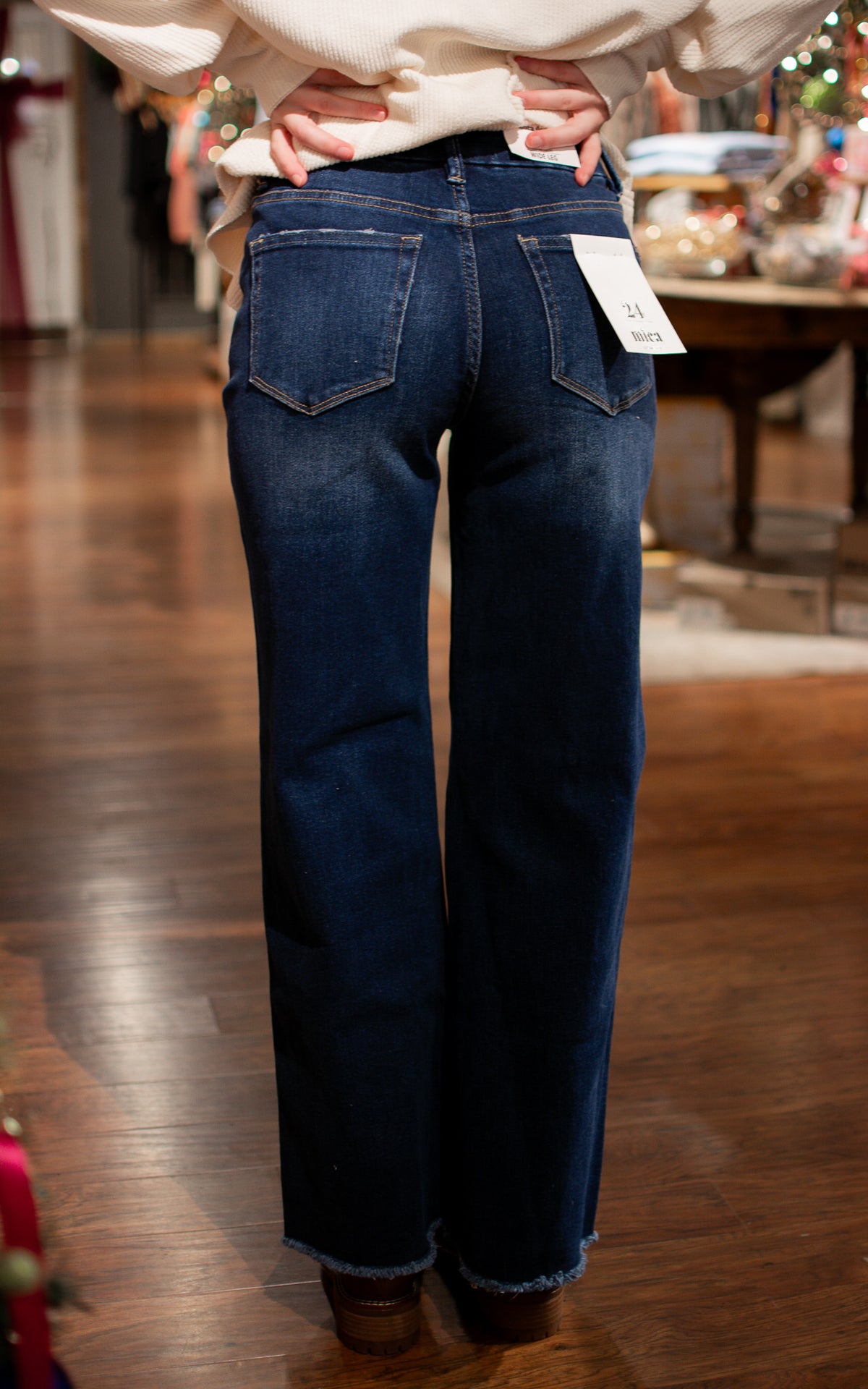 Introducing the Ultramarine Festival Mica Jeans - perfect for showing off your individual style. With a wide leg, frayed hem, and ultra stretch fit, these high-waisted jeans can be rolled up to show off your socks with boots or left long for a casual look with sneakers. Amp up your wardrobe with these quirky and playful jeans.