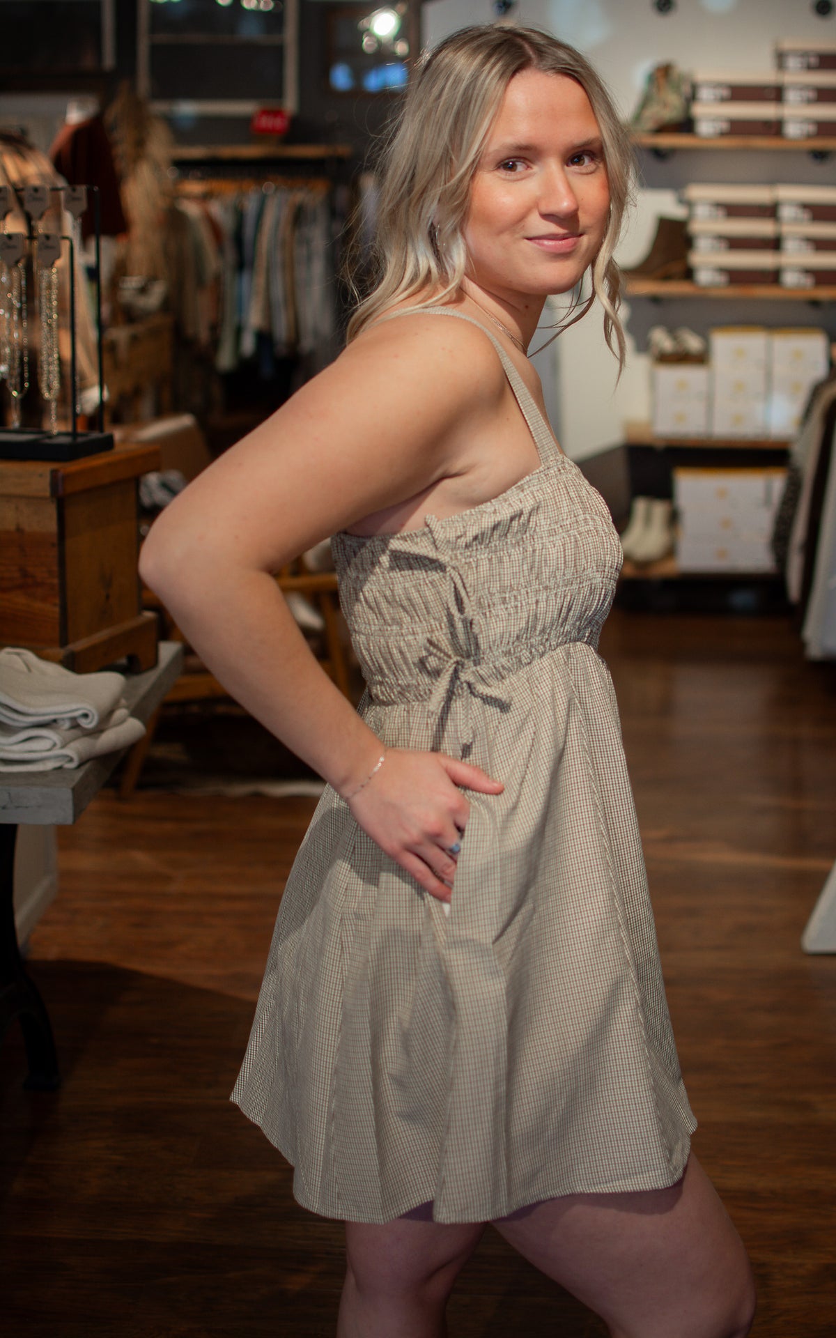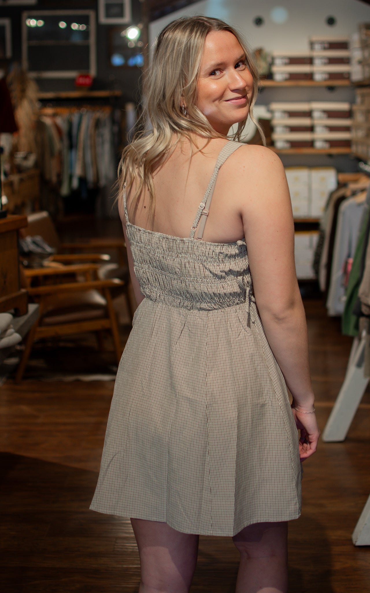 Americano Plaid Mini Dress Plaid perfection just got practical. This adorable mini dress features a timeless plaid pattern and the bonus feature every outfit needs—functional pockets. Whether you're dressing it up with boots or keeping it casual with sneakers, this cute little number is ready for anything your day throws at you.