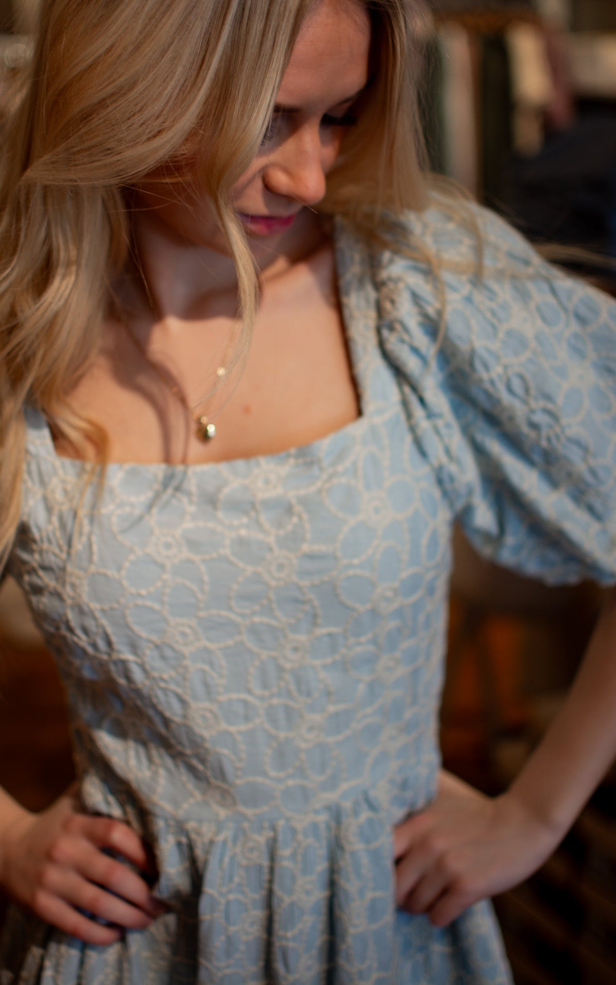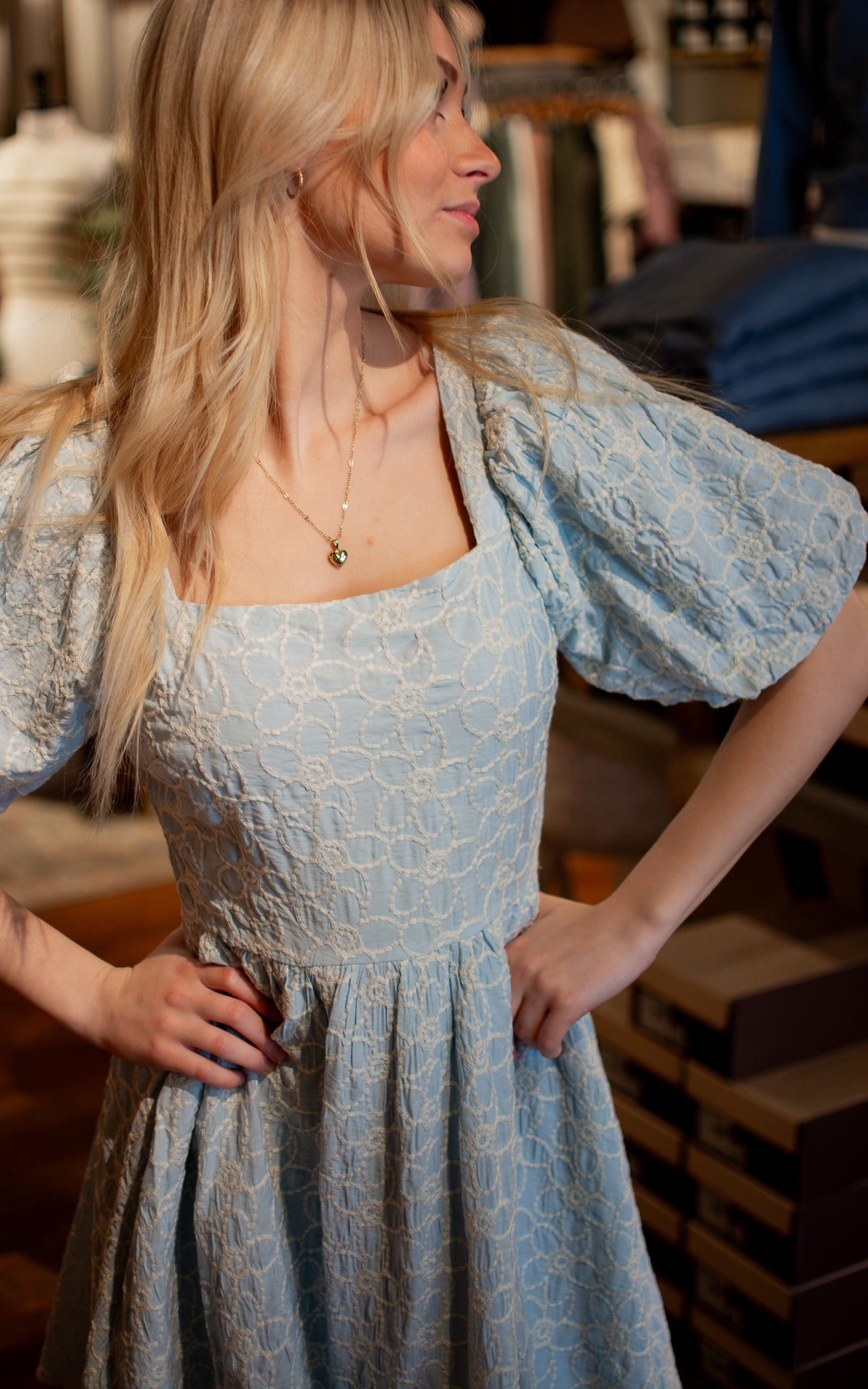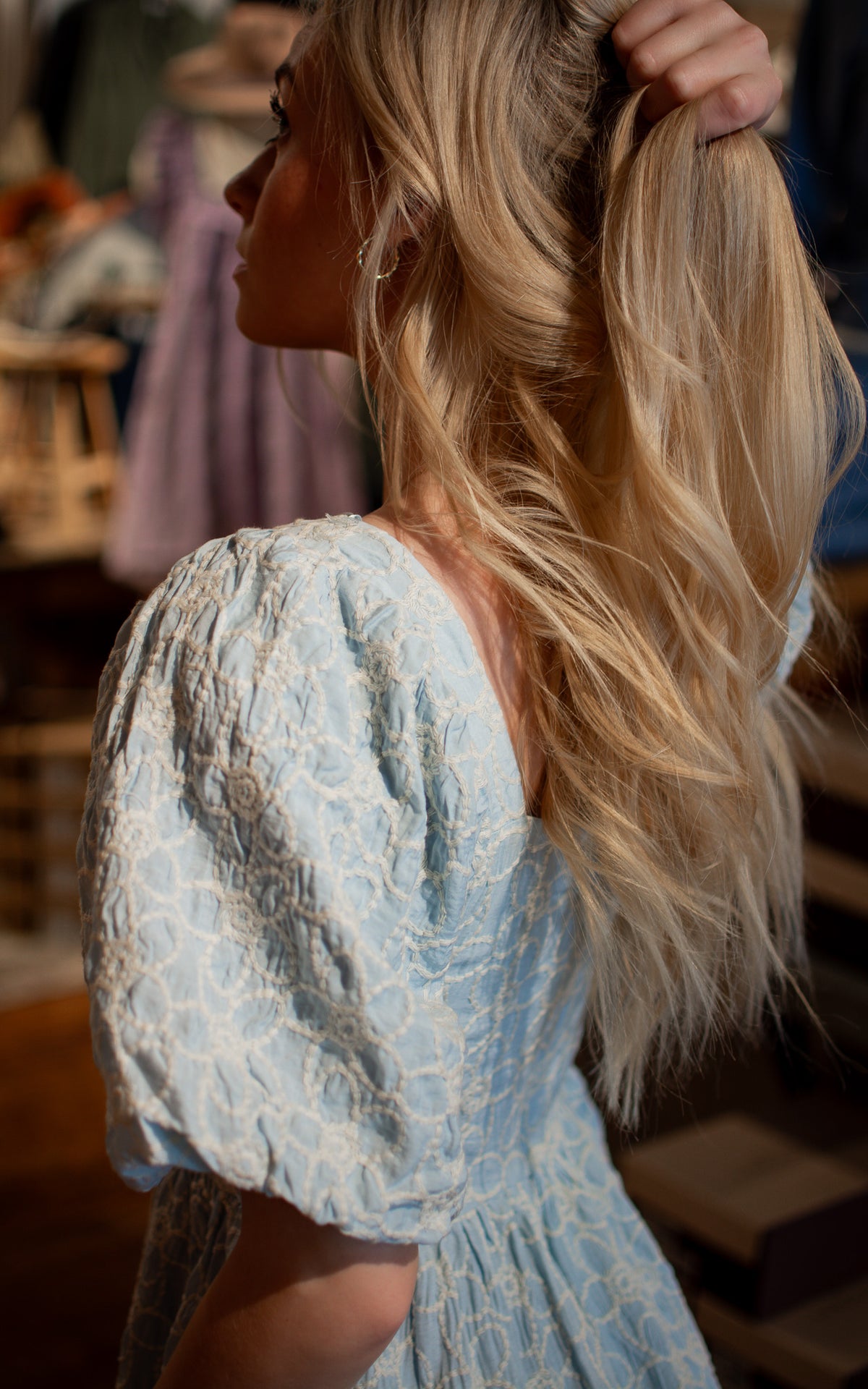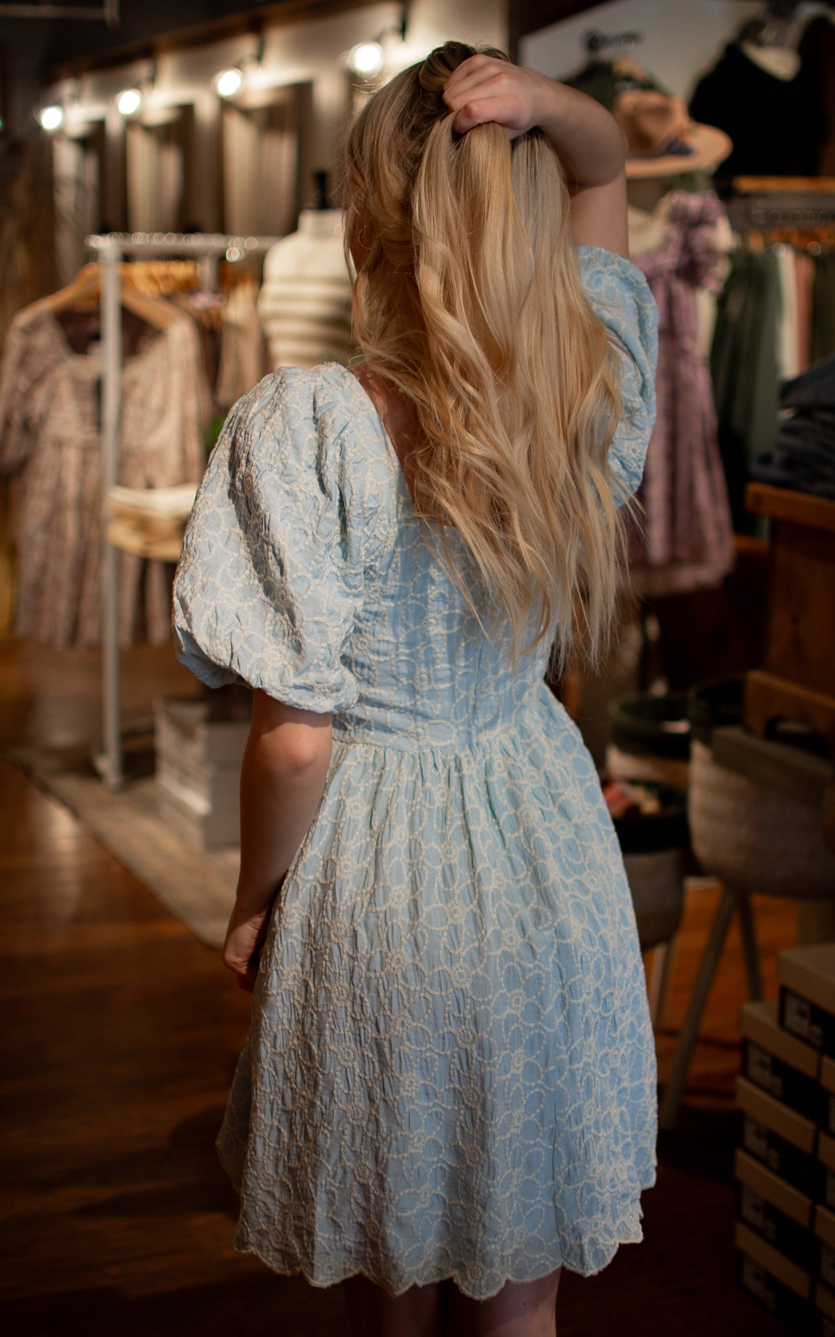 Introducing the most darling dress you'll ever own - the Bubble Daisy Mini Dress! Featuring a sweet light blue color and stunning white embroidered floral design, you'll feel effortlessly stylish and chic. Plus, with a convenient back zipper, this dress is as practical as it is beautiful. Get ready to turn heads with this must-have addition to your wardrobe!