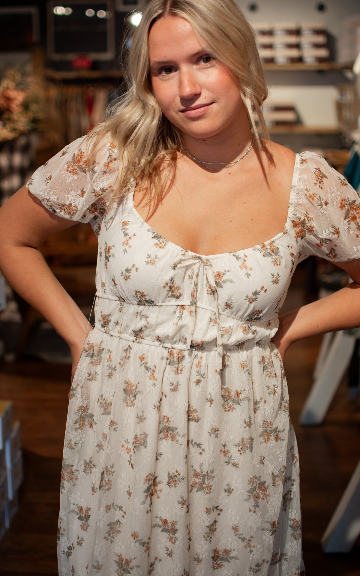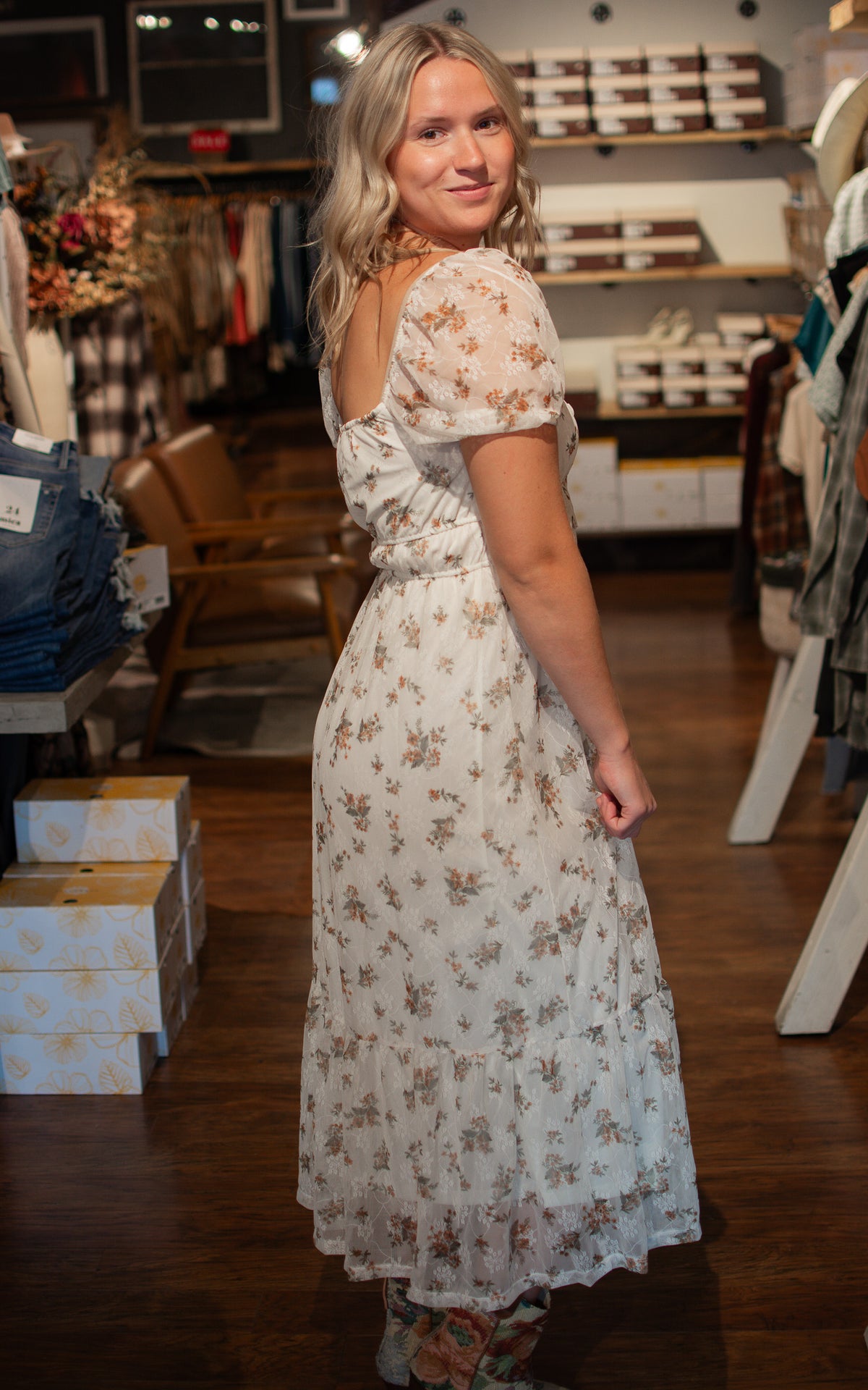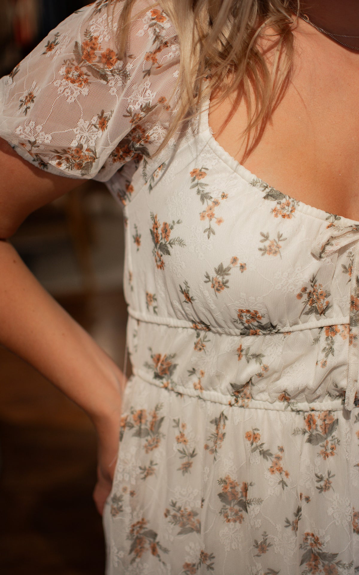 Twirl into charm with the Finnius Floral Maxi Dress. This playful cream maxi features a delicate floral print and a fully lined mesh design, making it the perfect breezy choice for any fun-filled day or dreamy evening.