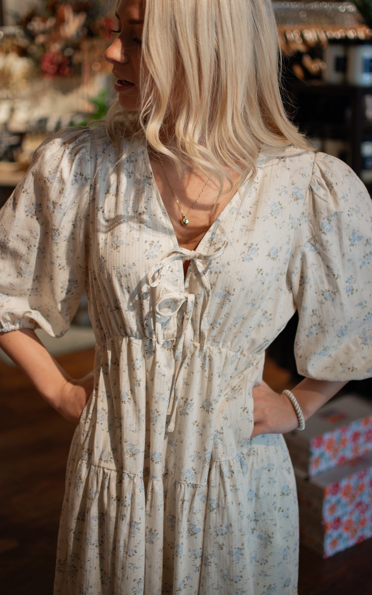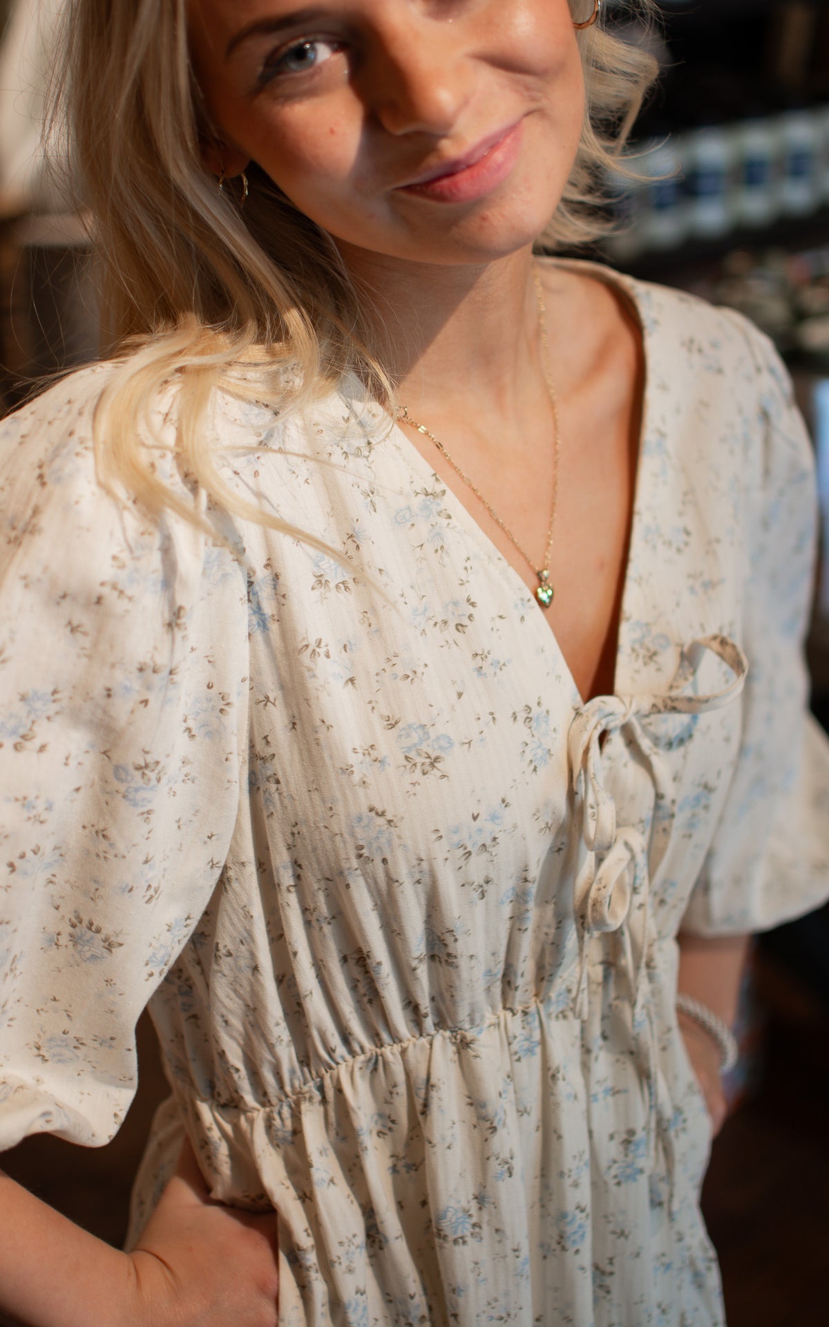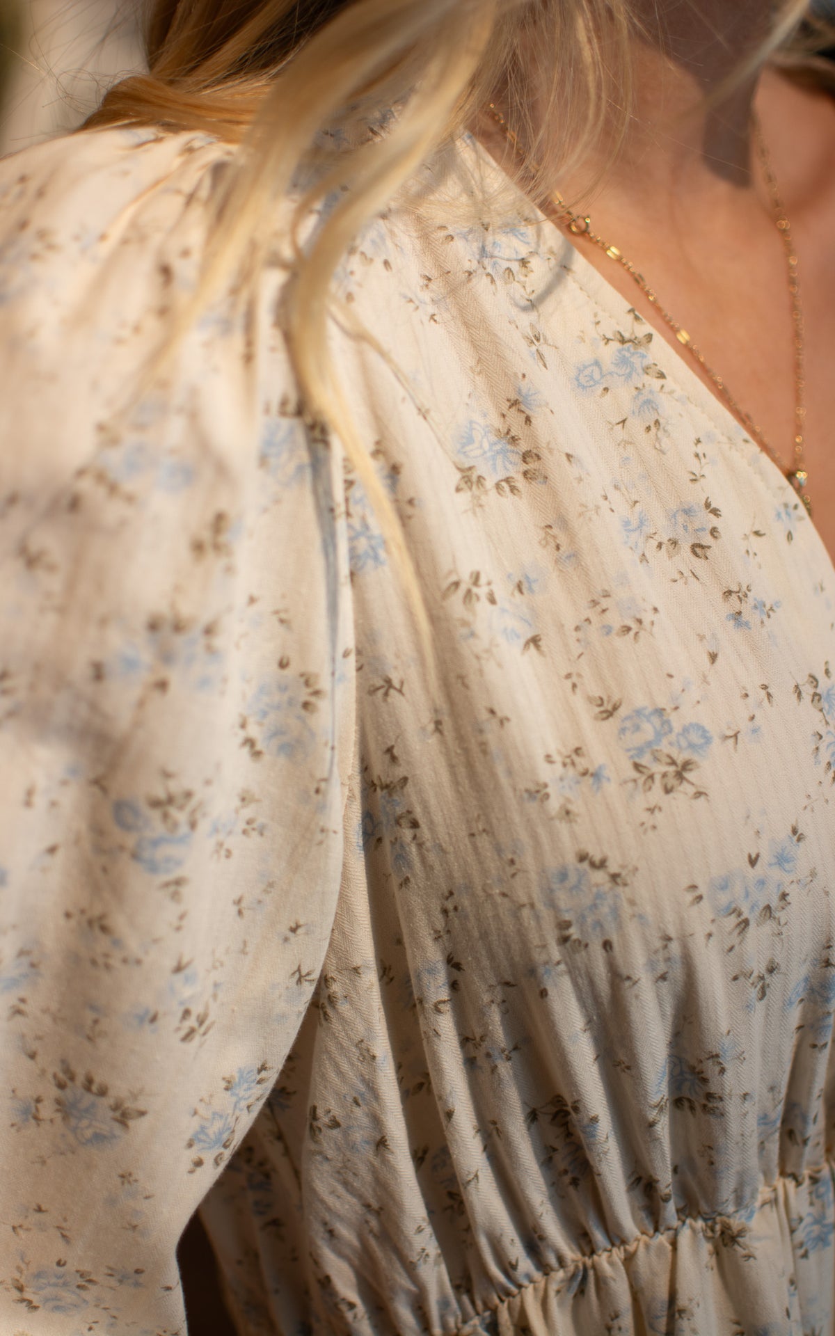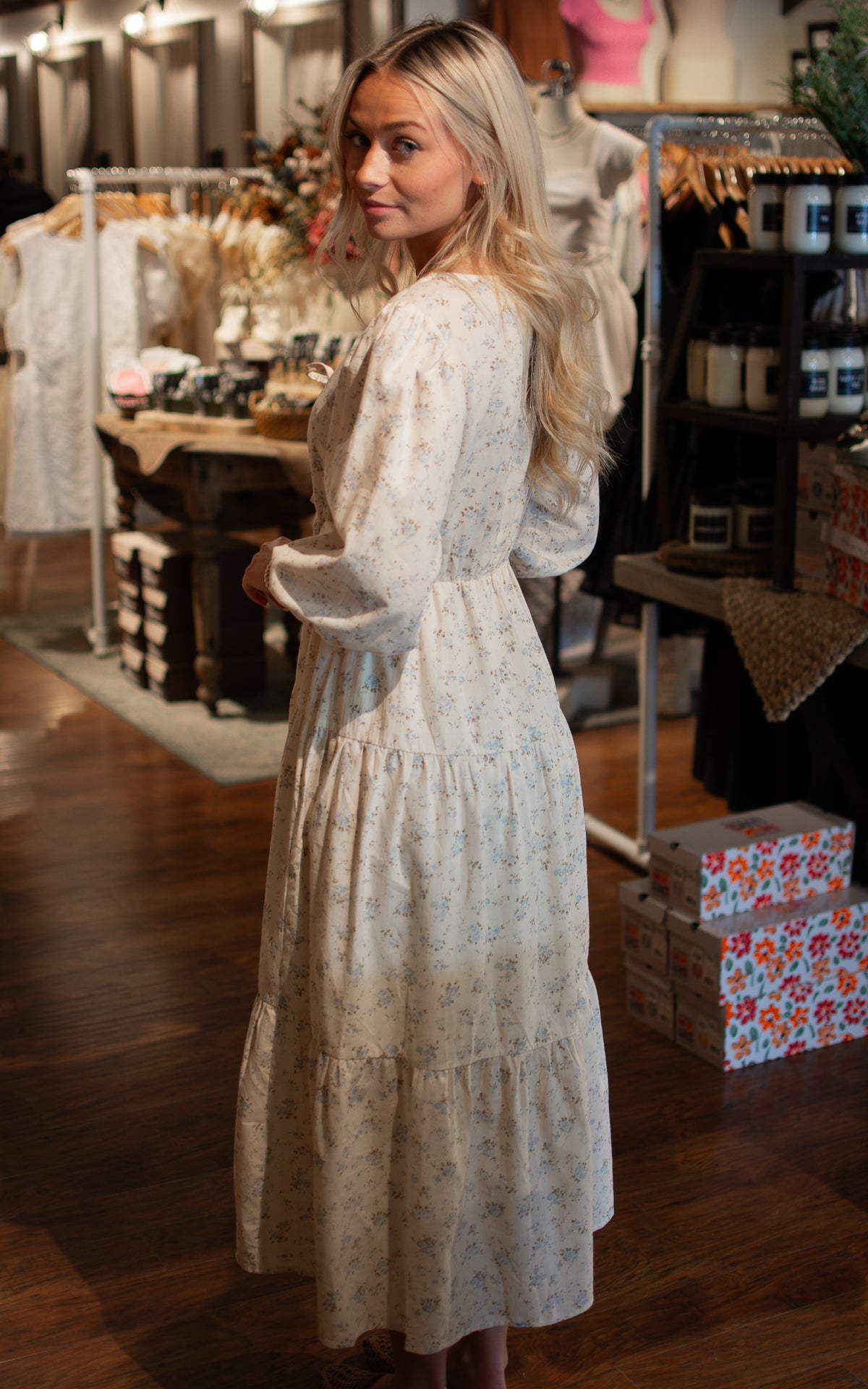 Embrace the whimsical charm of cottage core with our Iris Fields Midi Dress. This sweet floral dress brings a touch of romance to your wardrobe, perfect for frolicking in the fields or sipping tea on the porch. Bring out your inner fairy with this must-have piece!