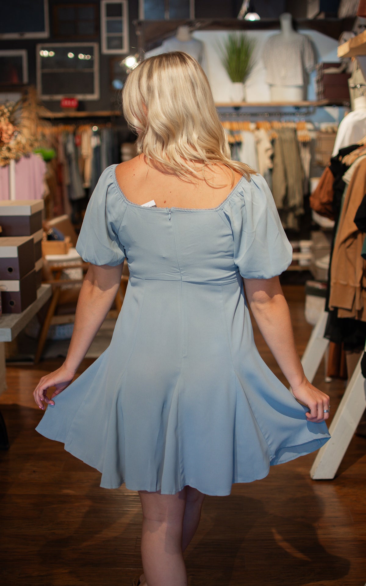 The Pure Blue Mini Dress is the sweetest pick for any occasion. Its soft baby blue color and playful style make it a charming choice that’s sure to brighten your day and your wardrobe.