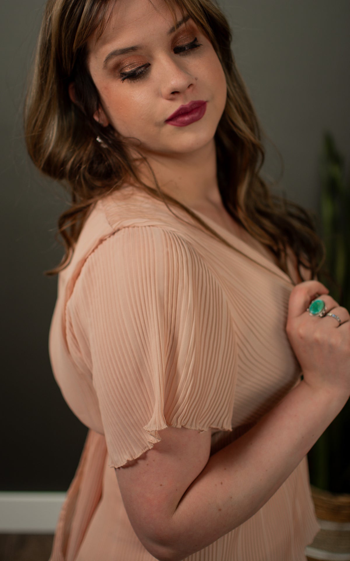 Get ready to wow in the Riled Up Riley Dress. This elegant dress features permanent pleated fabric and a fully lined design for effortless style. The fabric and skirt tiers add texture for a touch of uniqueness. Perfect for any occasion, this dress is sure to turn heads.