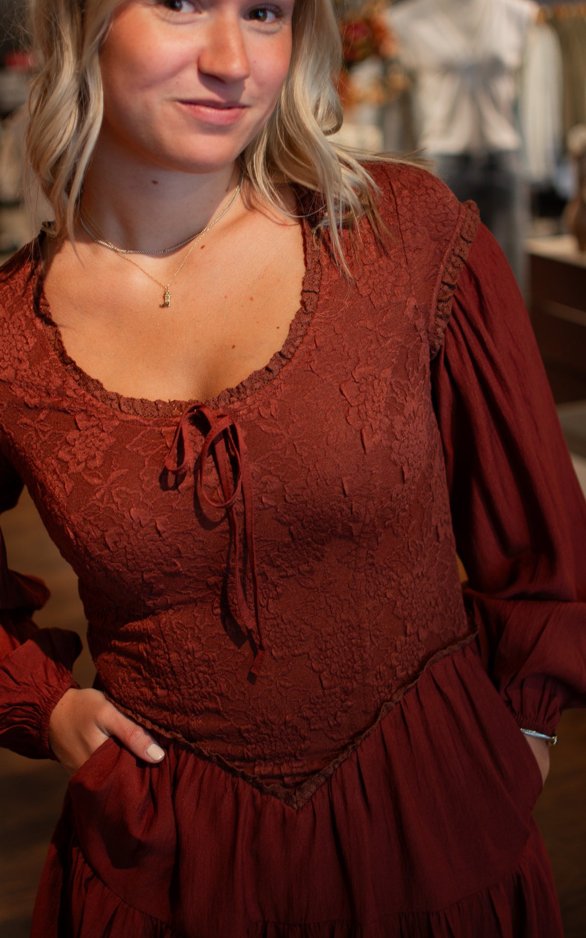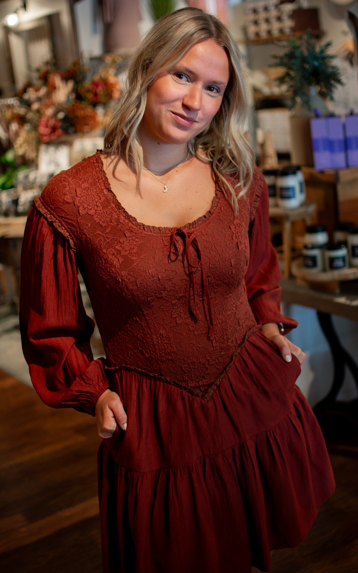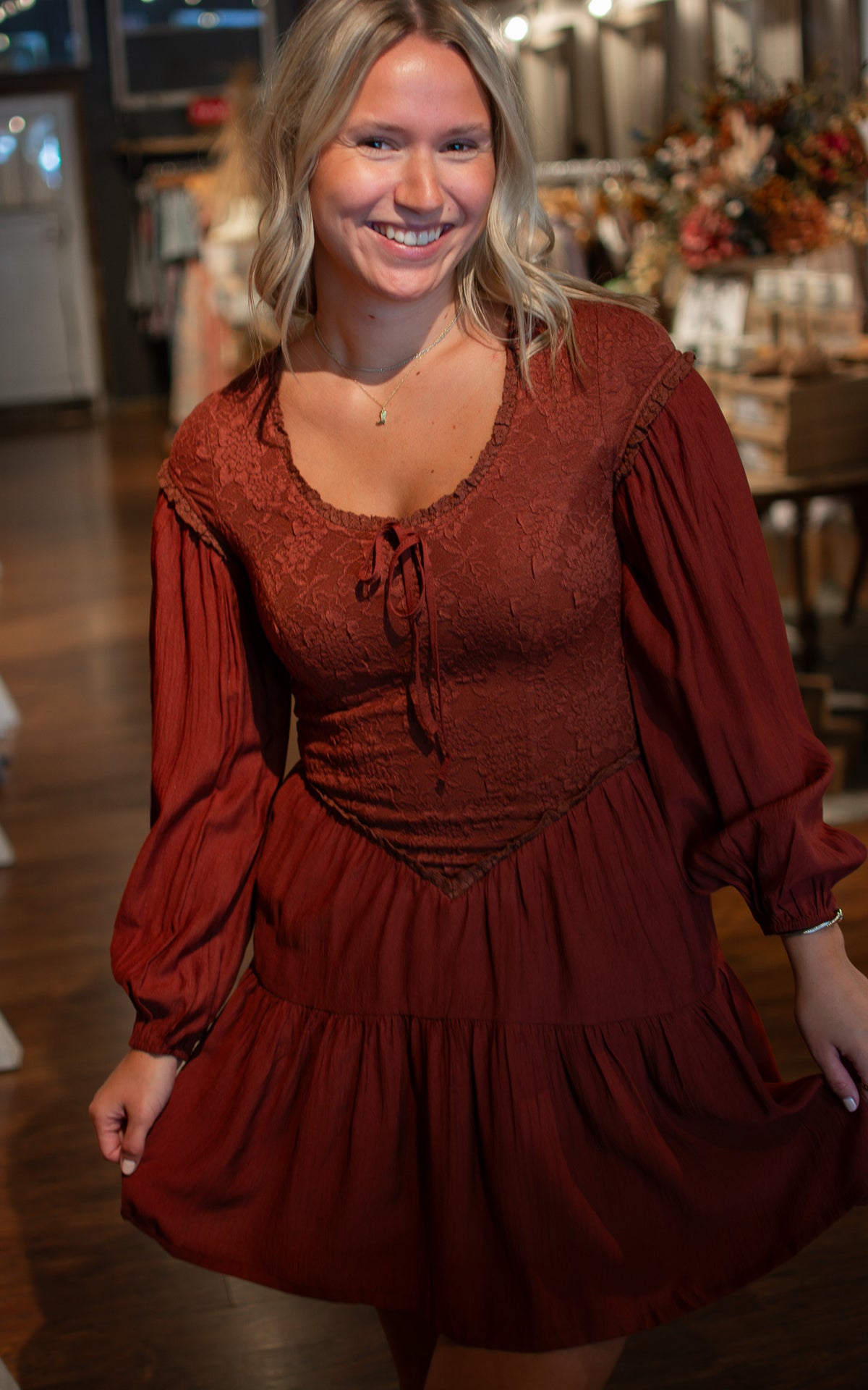 The Rusty Romance Mini Dress offers a playful nod to vintage charm with its rust color and flattering corset silhouette. Fully lined for comfort, this flirty dress is perfect for turning heads and making every moment feel special.