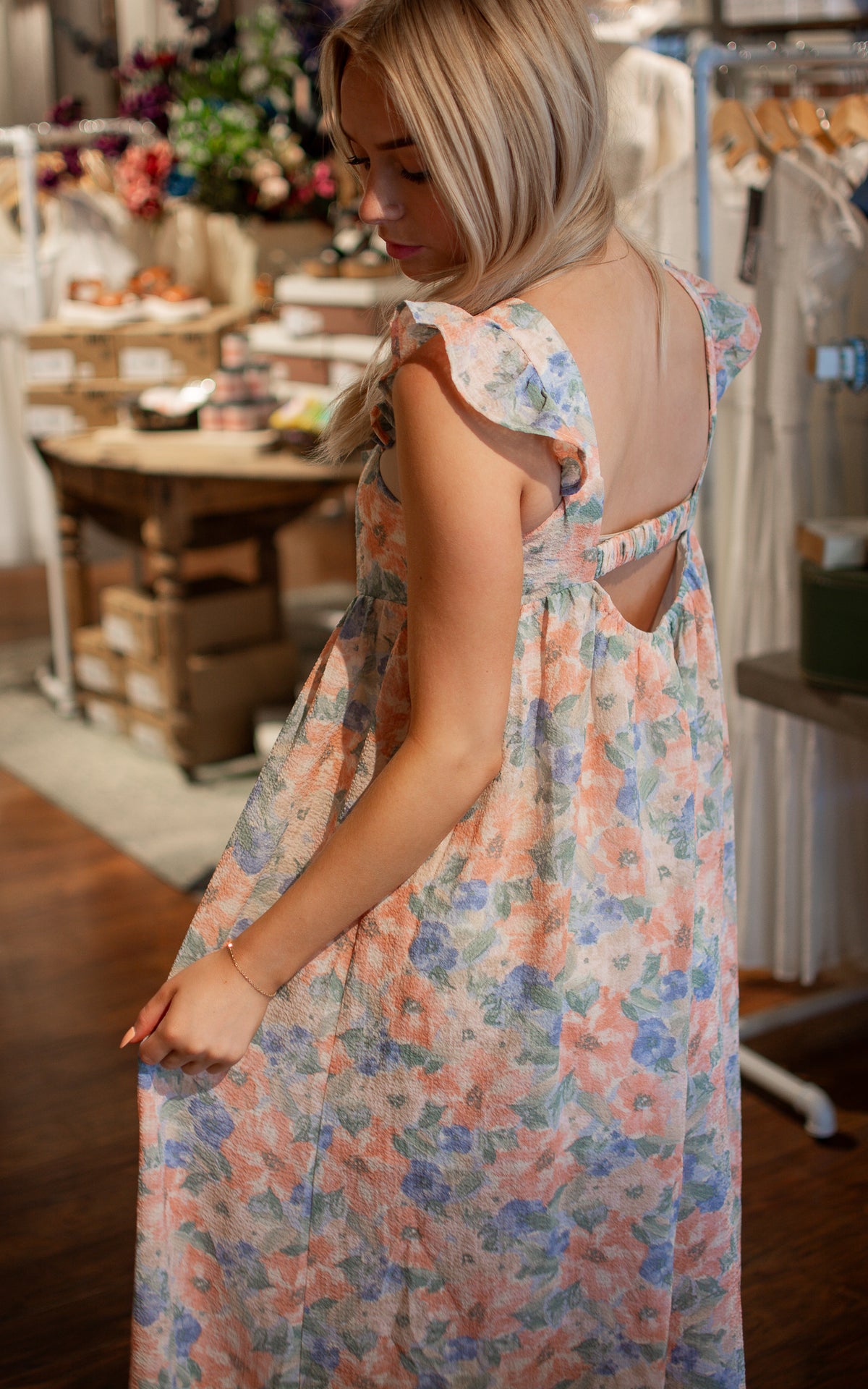 Get ready to make a statement with our Watercolor Kisses Midi Dress. Its country babydoll silhouette and ruffle straps add a playful touch, while the side zipper provides a perfect fit. Make a splash with this must-have addition to your wardrobe!