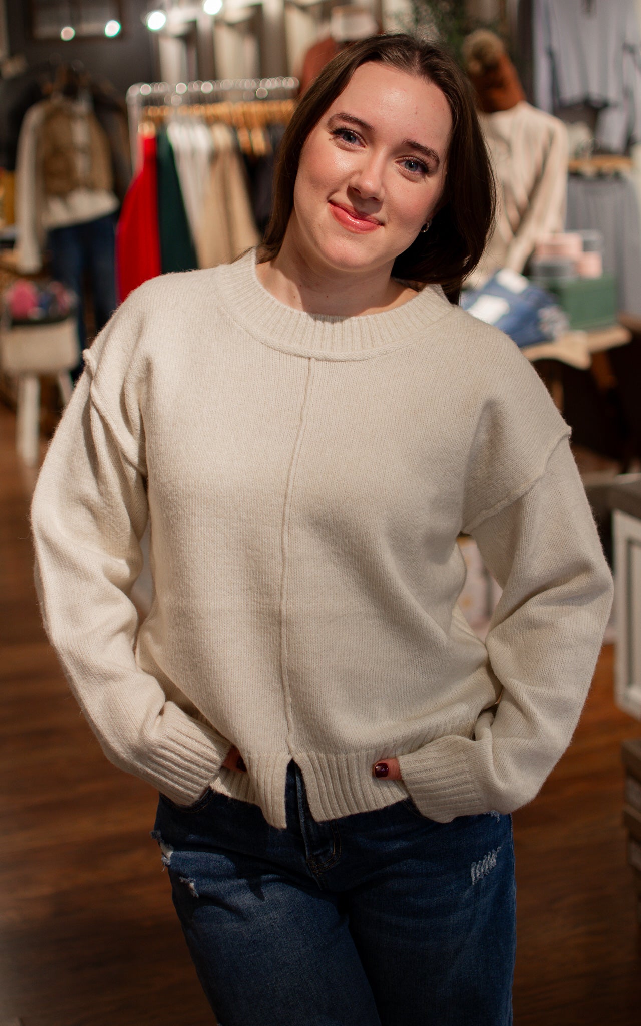 Choose your vibe with this classic sweater available in soft ivory or blush pink, both featuring a chic front slit that adds modern edge to timeless style. The slit detail brings just enough sass to keep things interesting while the neutral palette keeps it endlessly wearable with everything in your closet. Sophisticated yet playful, this sweater proves that sometimes the best pieces are the ones that work as hard as you do.