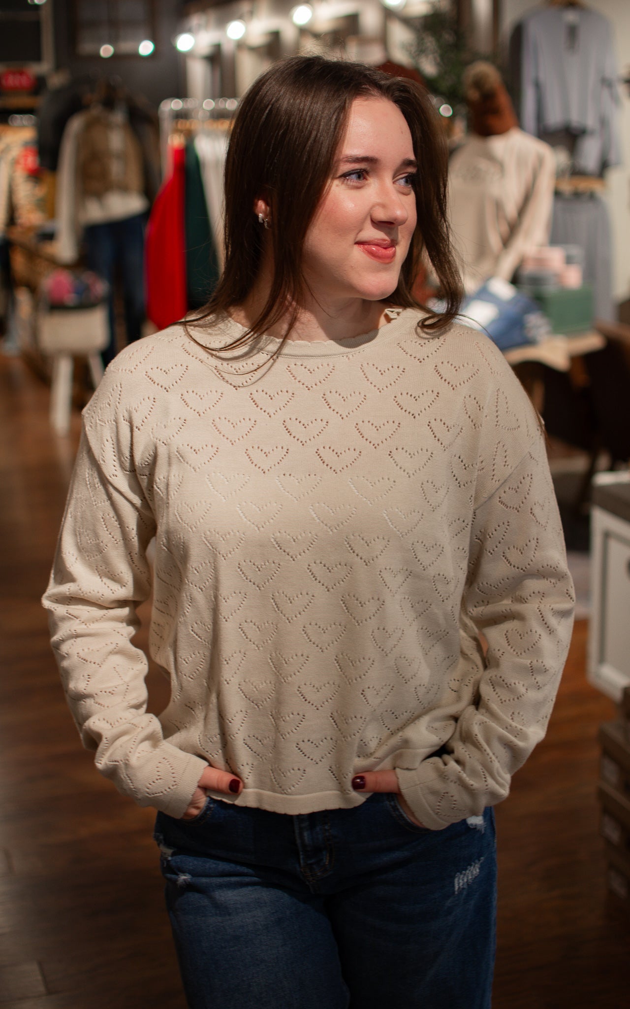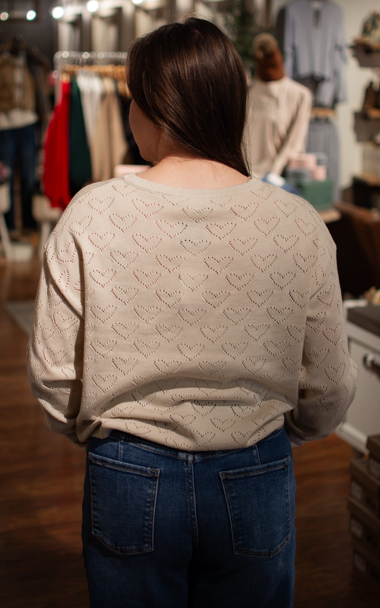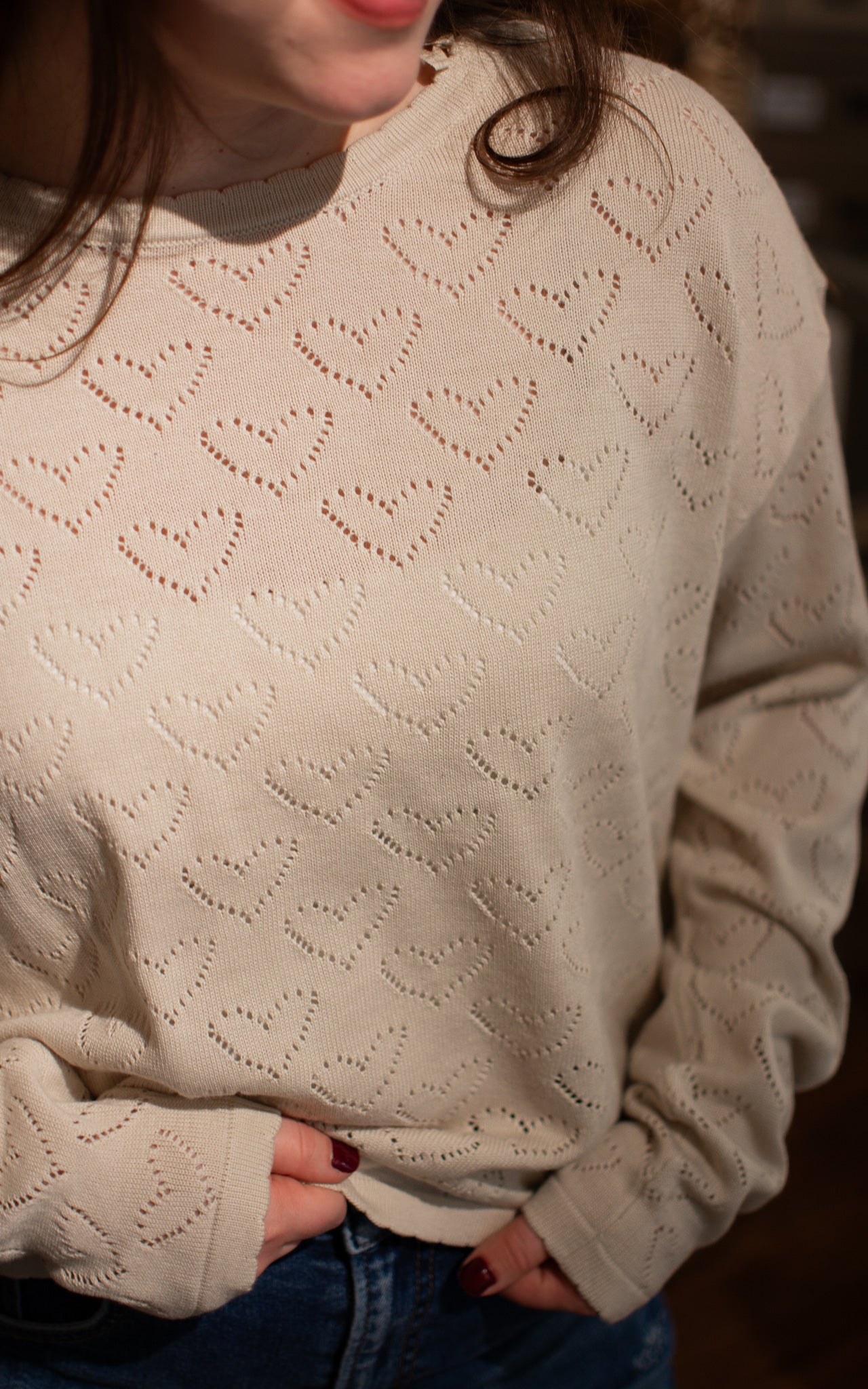 Get ready to spread the love with this adorable tan sweater featuring a charming heart design. Whether you're planning a romantic Valentine's date or celebrating Galentine's with your squad, this sweater is your ticket to feeling cute and confident. The warm, neutral tan base keeps things versatile while the heart detail adds just the right amount of sweetness—perfect for showing your softer side with a playful wink.