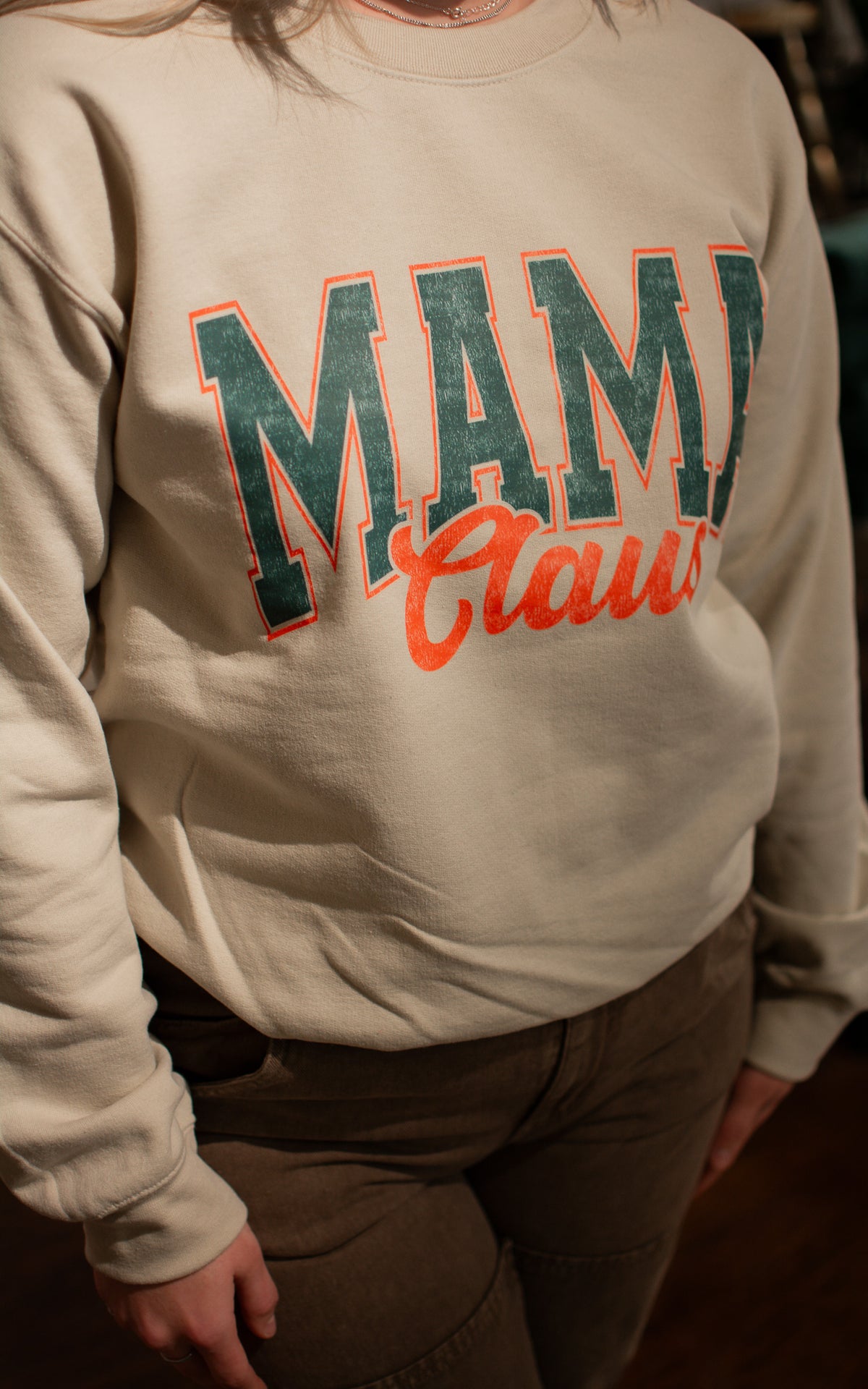 A heartfelt shout-out to all the Mama Clauses making the magic happen! This light tan sweatshirt celebrates the hardworking gals who keep the holiday spirit alive with style and comfort. The unisex fit means everyone can join in the celebration, whether you're the one orchestrating the festivities or cheering on those who are. Because the real magic? That's you.