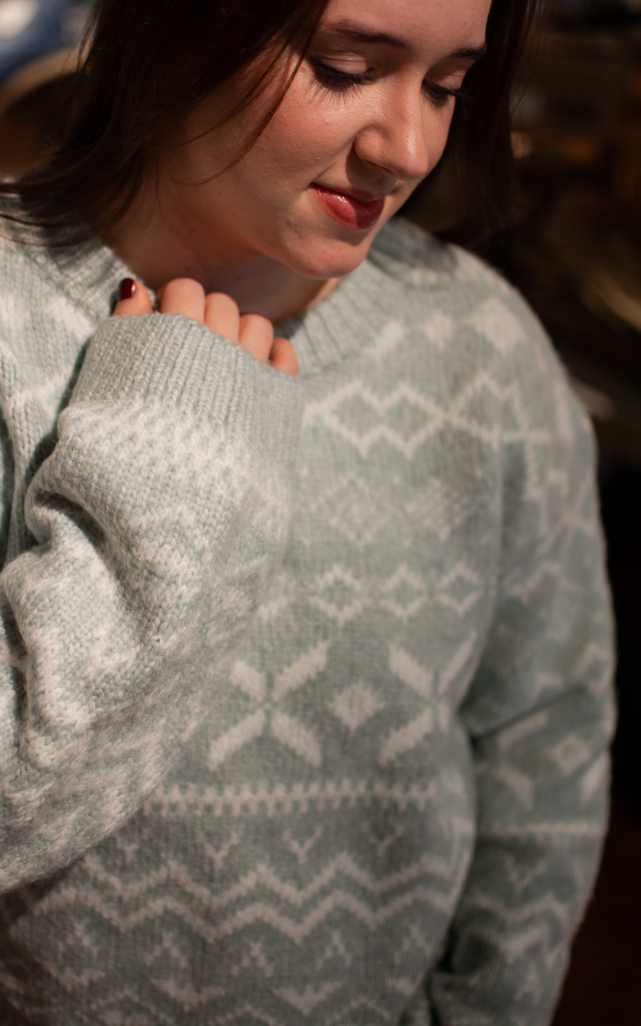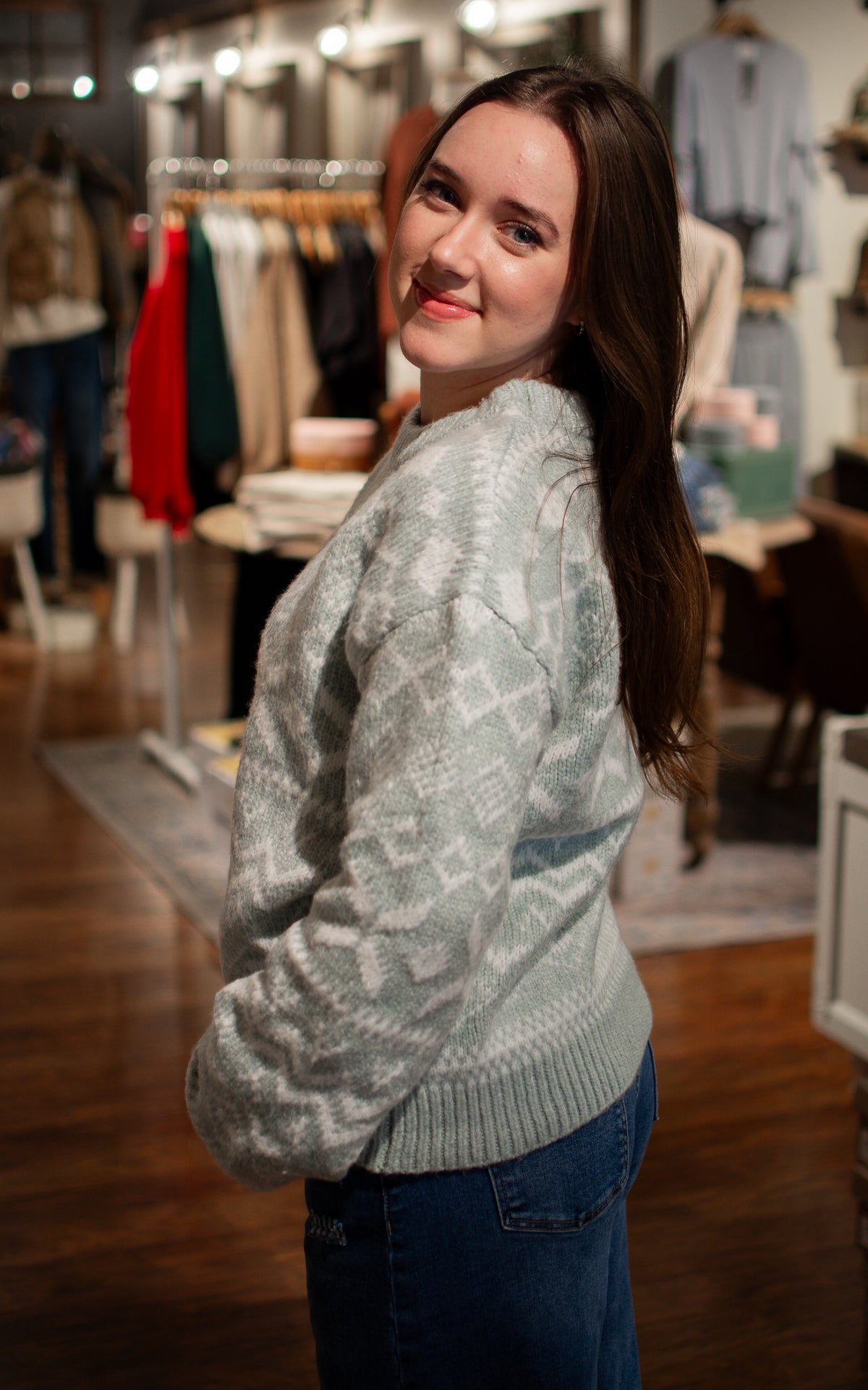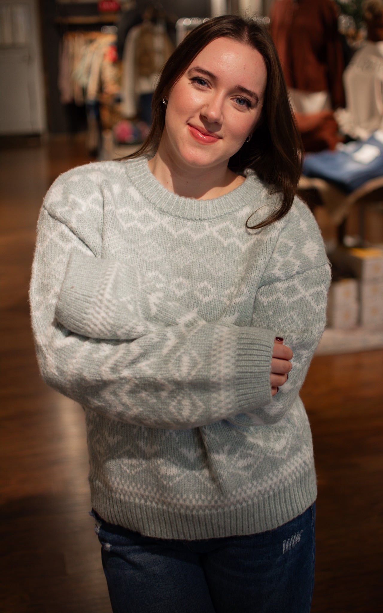 Sink into softness with this gorgeous teal sweater adorned with a charming cream design that brings visual interest and playful appeal. The luxuriously soft fabric feels amazing against your skin, making this piece impossible to resist once you slip it on. Perfect for cozy nights in or casual outings, this sweater combines comfort and style in a way that feels both indulgent and effortlessly wearable.