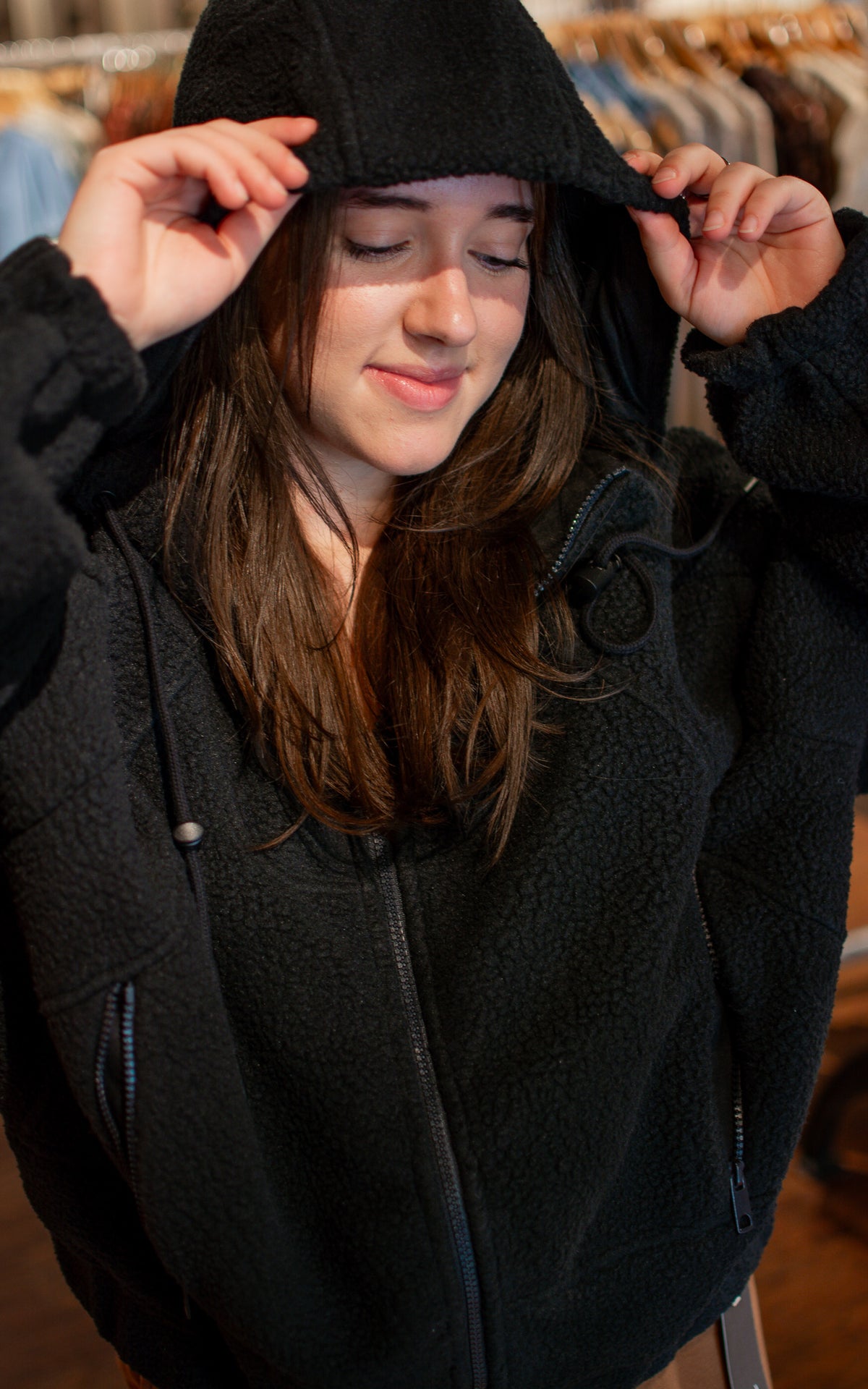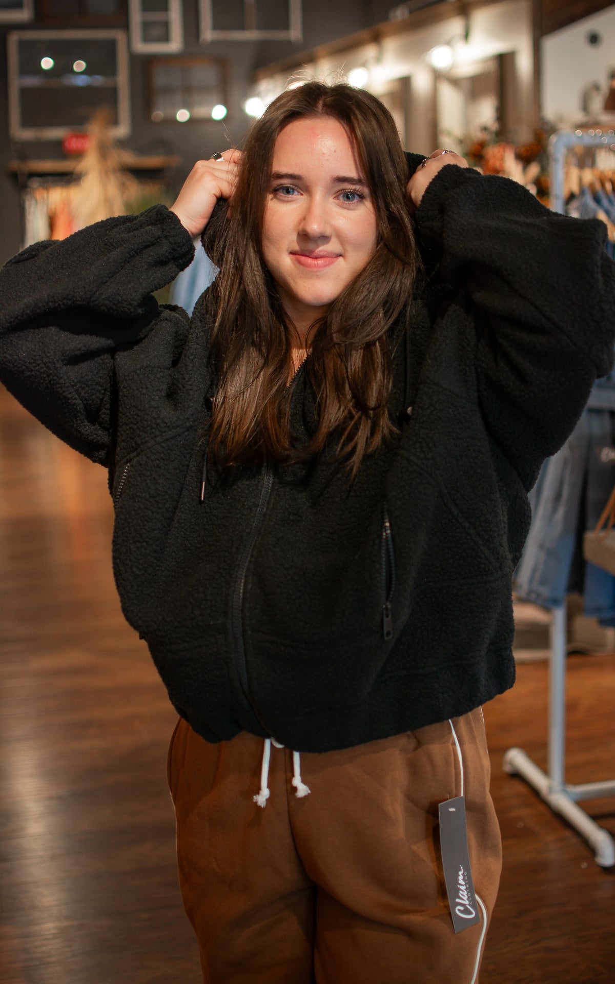 Snuggle into the Sailor Zip Up, your playful go-to sherpa hoodie for fall. This cozy zip-up jacket keeps you warm and stylish while adding a fun, laid-back vibe to your crisp autumn days.