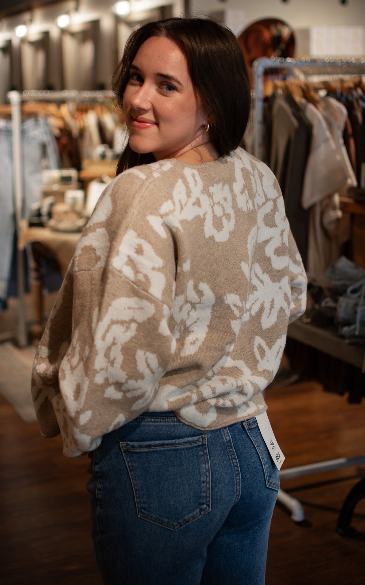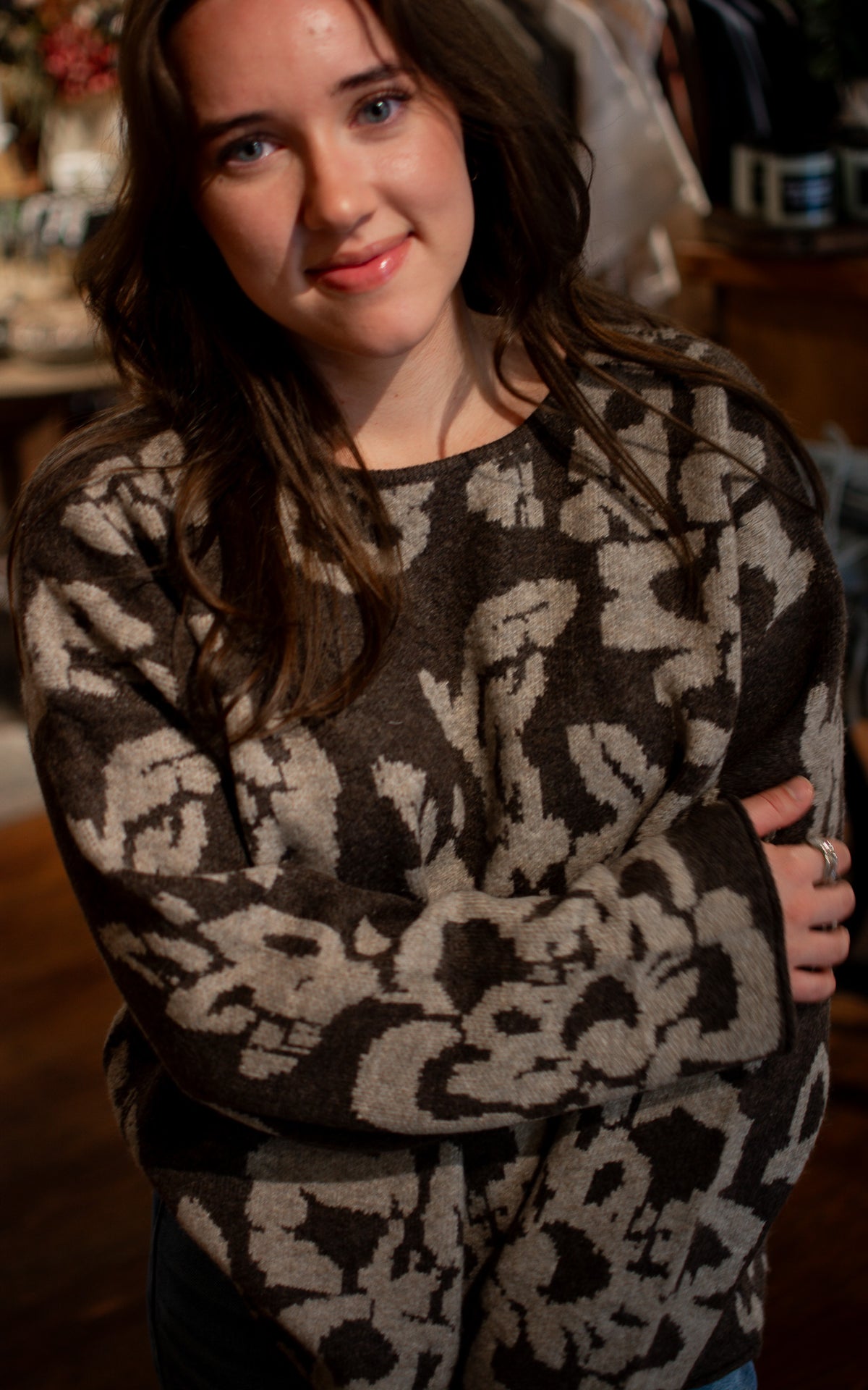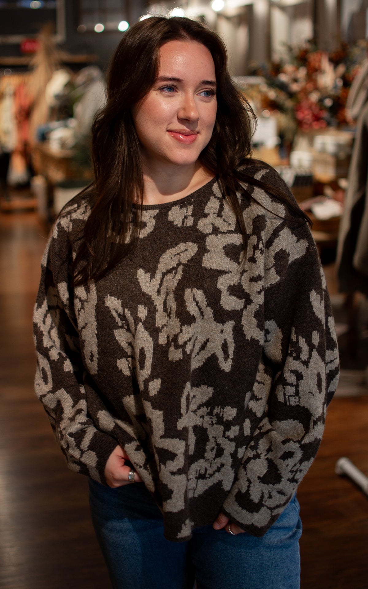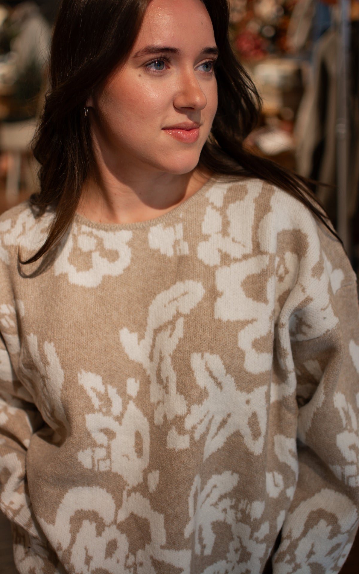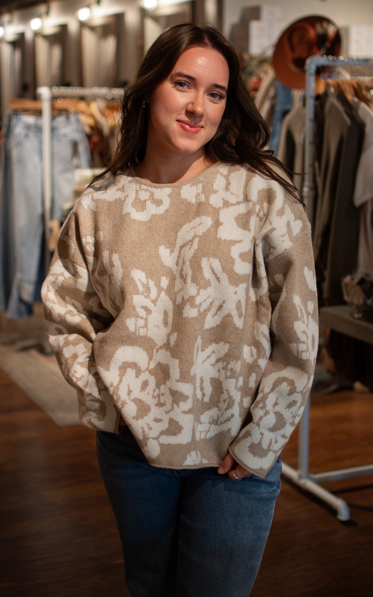 Stand out with the Sand Storm Sweater! Whether you choose warm brown or cozy oatmeal, the bold large floral pattern brings vibrant energy to your look. Soft and playful, this sweater is perfect for making a statement while staying snug all day long.
