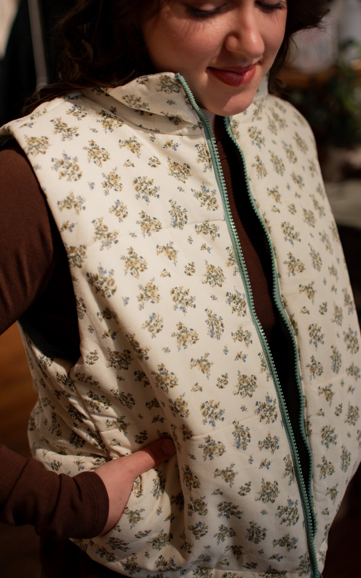 True Blue Floral Puffer Vest