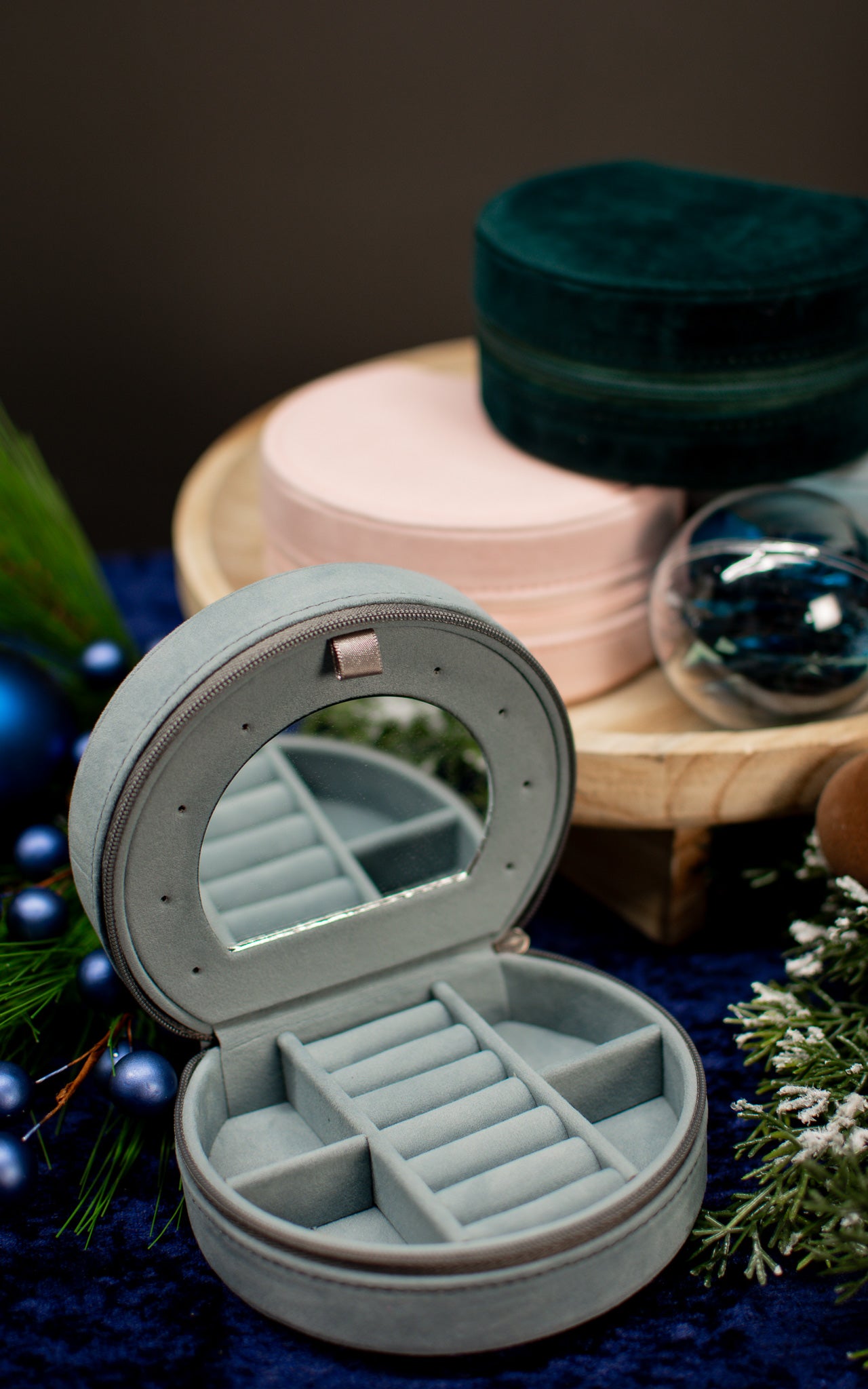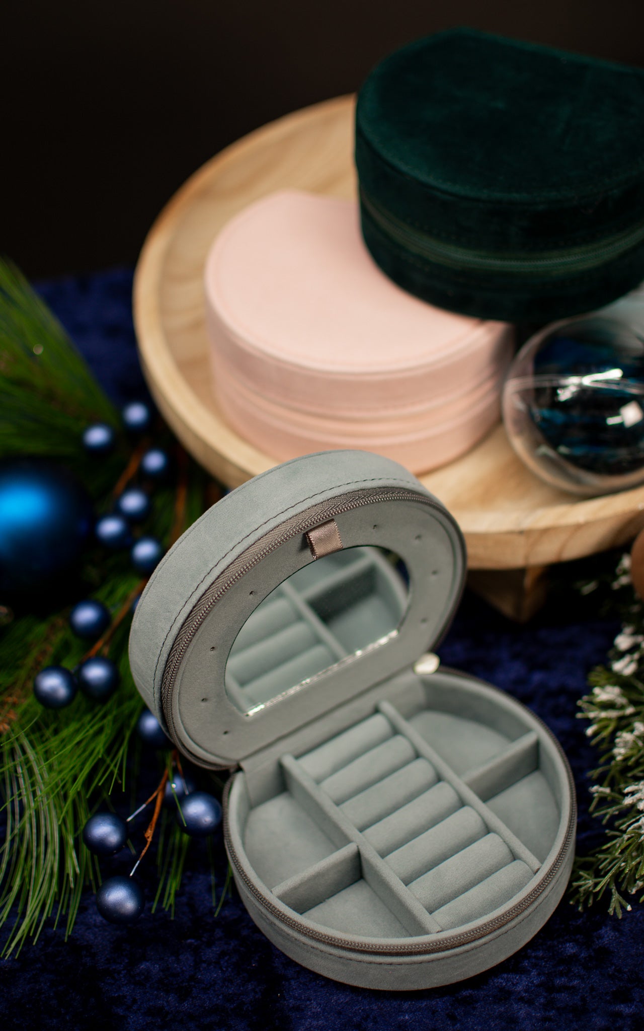 Meet your new travel essential: the Velvetier Jewelry Case. Wrapped in sumptuous velvet and available in gorgeous jewel tones, this compact case packs serious storage power. A built-in mirror lets you style on the fly, while thoughtfully designed compartments hold everything you need for a week away—rings, bracelets, earrings, and more. Lightweight yet luxe, it's the perfect companion for weekend getaways or business trips. Because looking fabulous shouldn't mean leaving your favorite pieces behind.