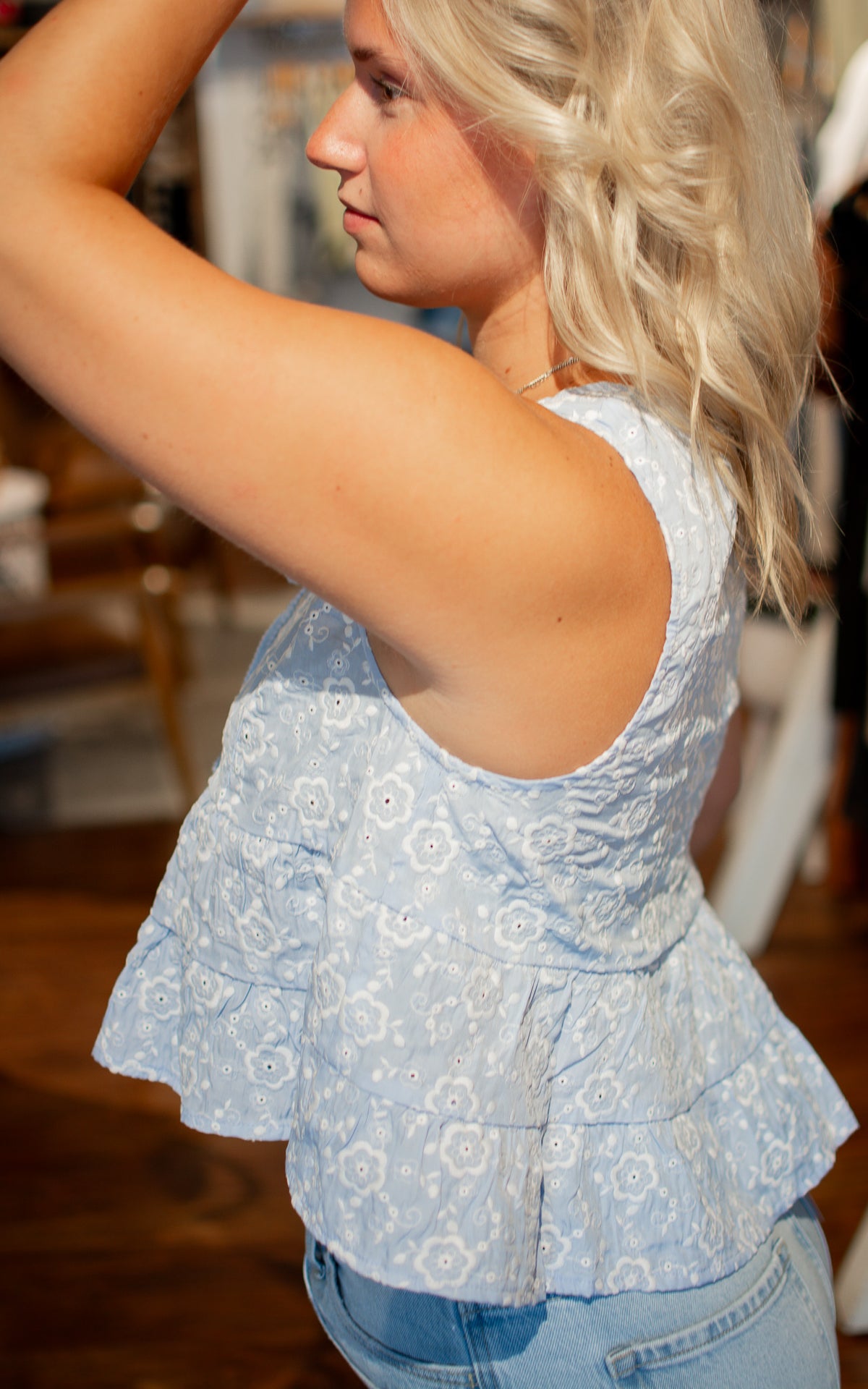 The Cottage Darling Embroidered Tank is perfect for playful picnic days. Its delicate embroidery and breezy design bring a sweet, charming vibe to your summer wardrobe.