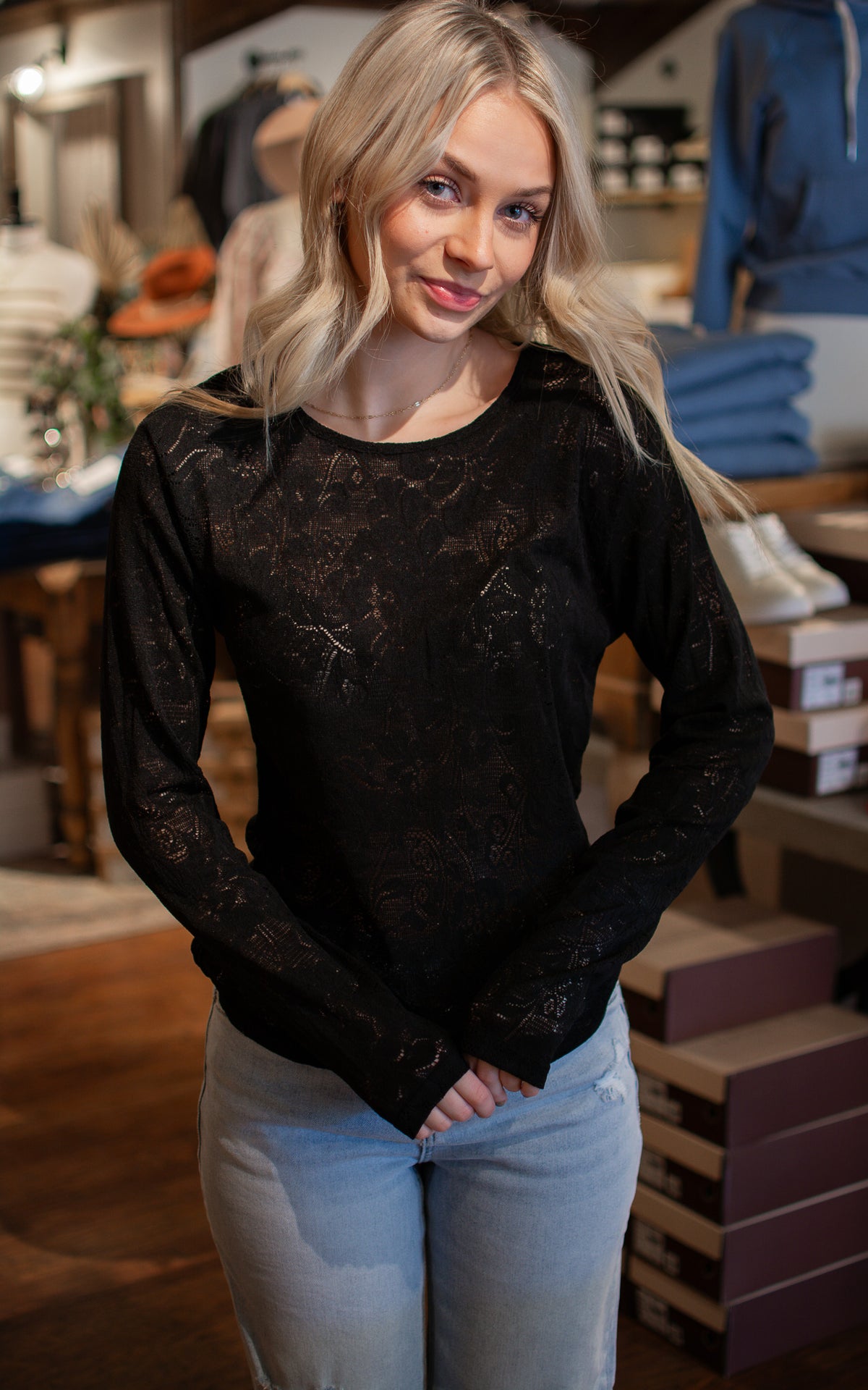 Add a touch of uniqueness to your wardrobe with our Victoria Floral Lace Long Sleeve. Featuring stunning lace and a boxy slimming fit, this piece is perfect for layering and adding a touch of glamour to any outfit.