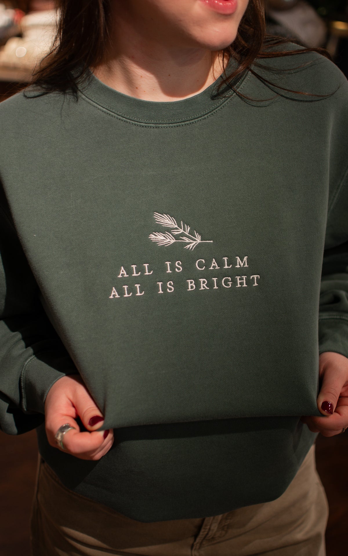 All Is Calm Embroidered Holiday Crew