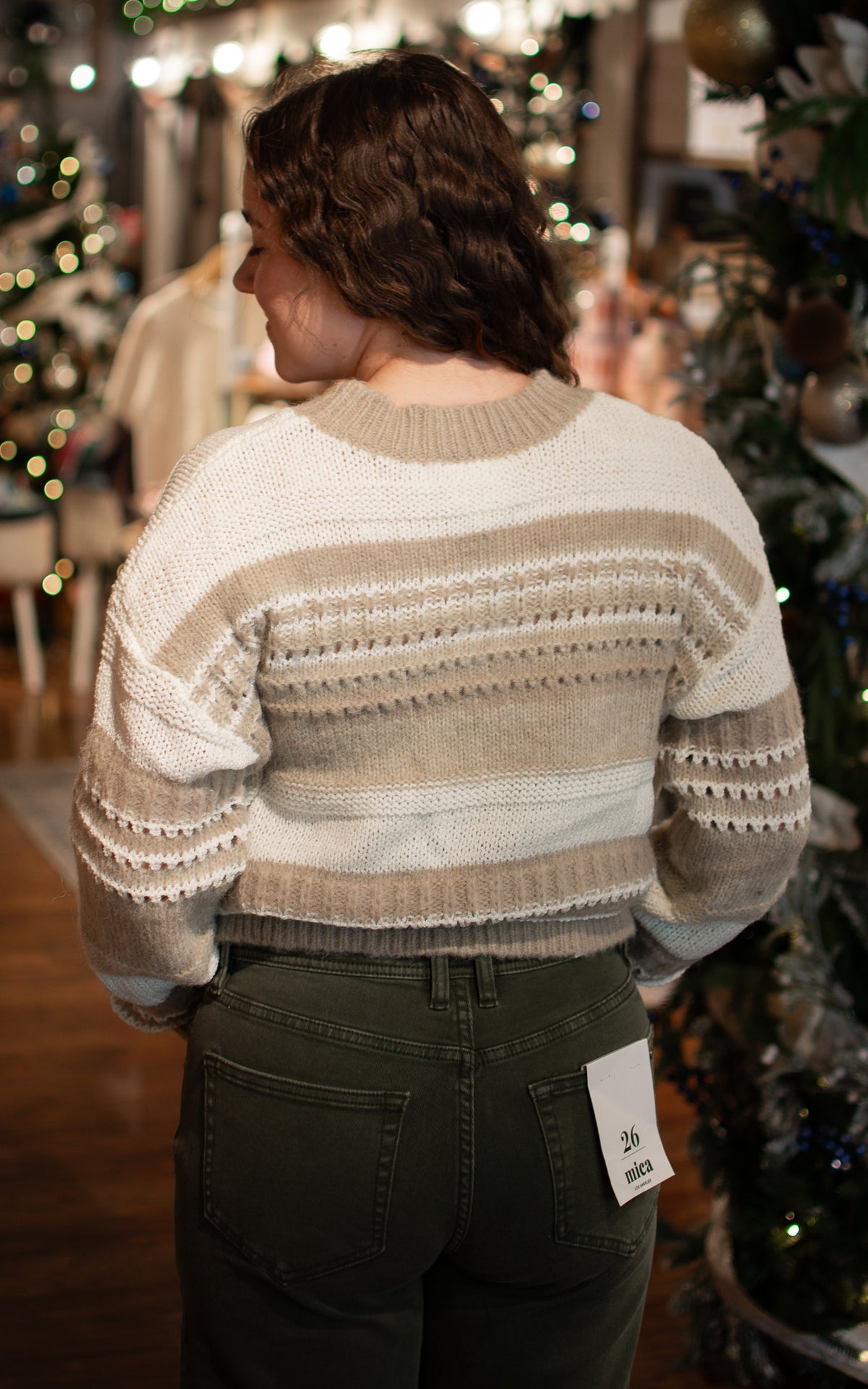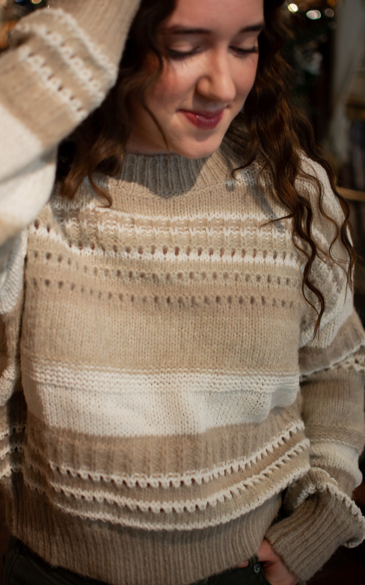 Reach for the Cinnamon Sprinkle Sweater when you want effortless style with a timeless twist. This beige and white striped knit brings understated sophistication to your everyday rotation. The balanced color palette works with virtually any piece in your wardrobe, making it the ultimate wardrobe workhorse. Soft and breathable, it's equally at home layered under jackets or worn on its own. Perfect for creating polished looks that feel anything but boring, this sweater proves that sometimes the simplest designs are the most versatile. Make it your new favorite for those days when you want to look put-together without overthinking it.