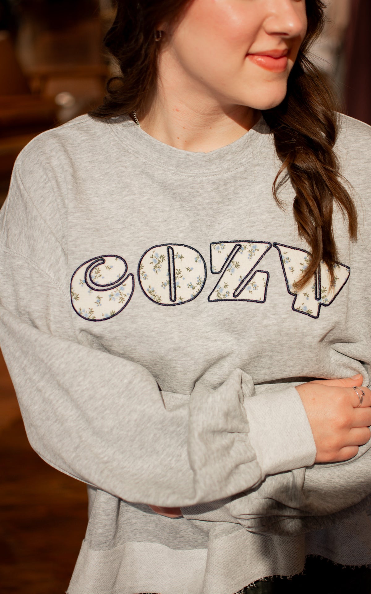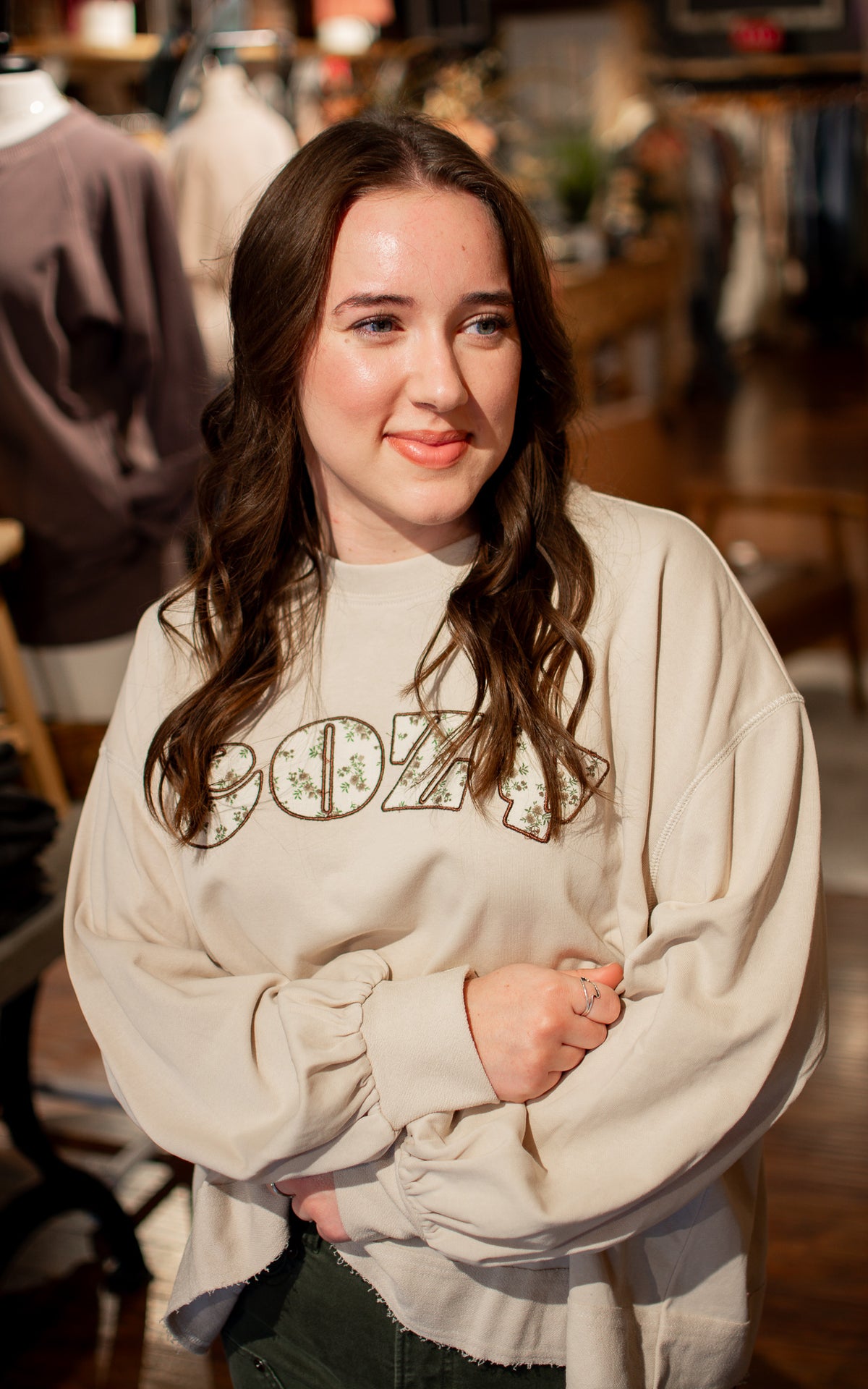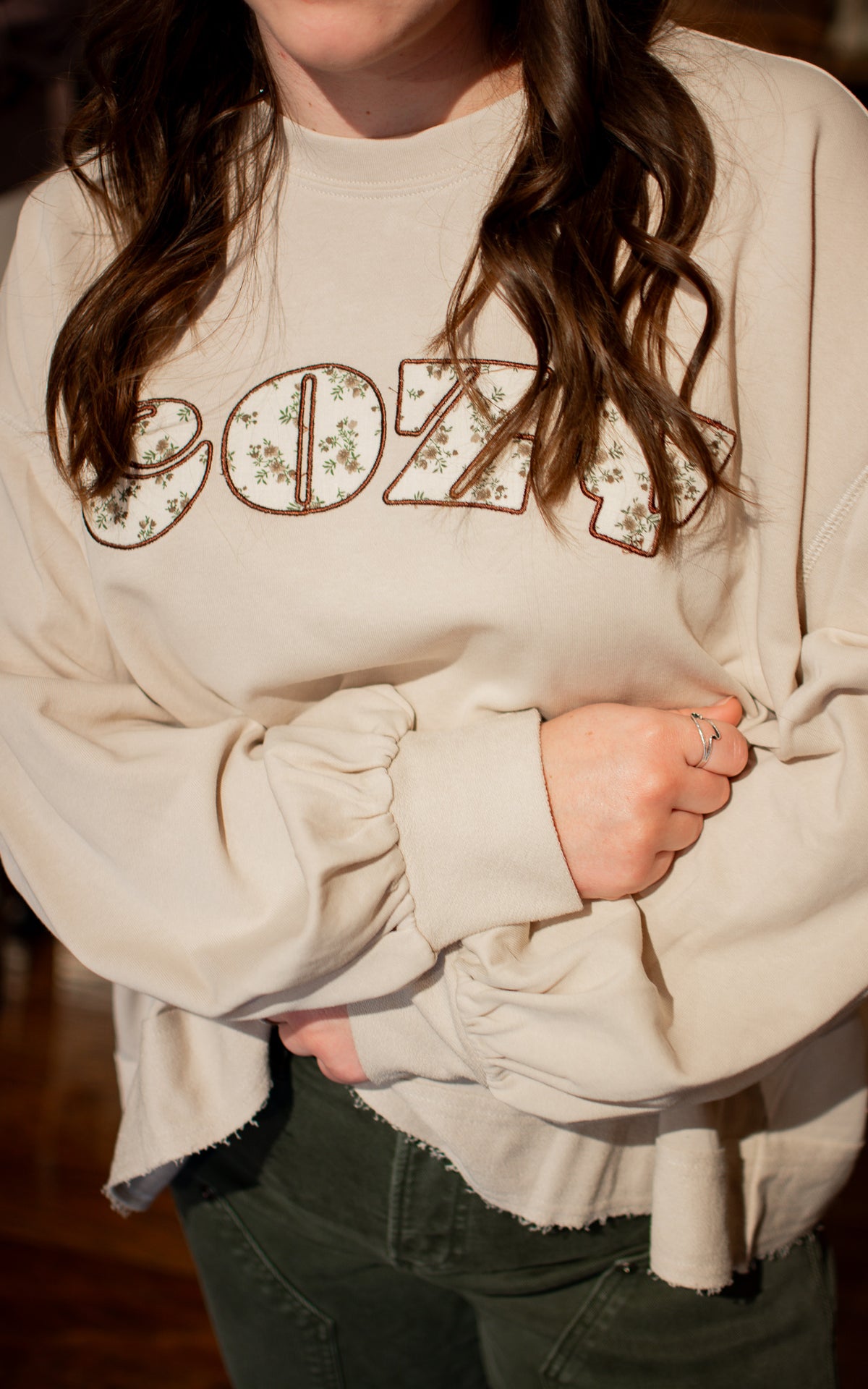 Slip into the Cozy Patch Crew Sweatshirt, available in soft grey or warm tan. Featuring a classic crew neck, snug cuffs on the wrists, embroidered cozy in floral, and a flowy hem, this playful sweatshirt offers just the right mix of comfort and flair for everyday fun. Perfect for lounging or stepping out with a relaxed vibe!