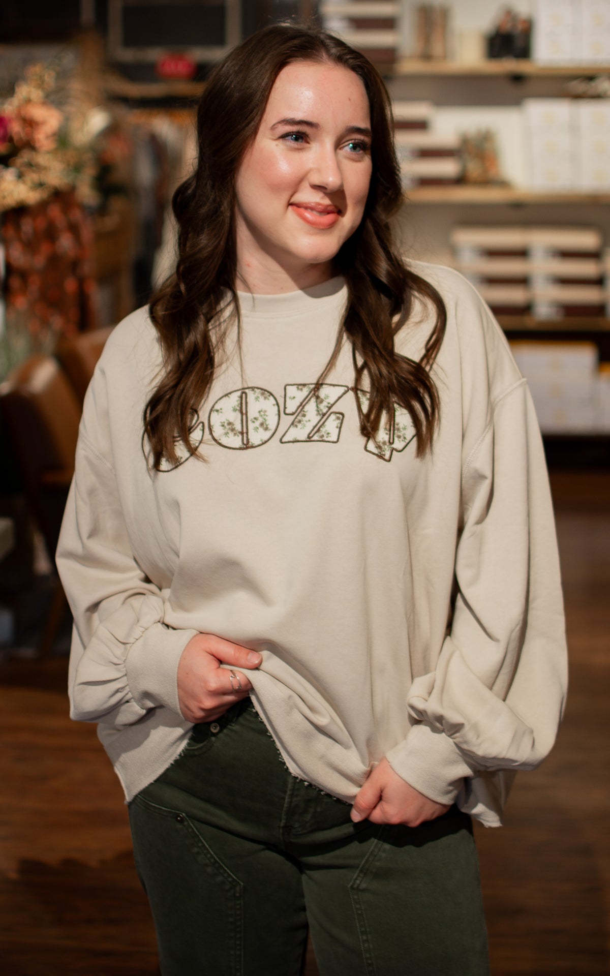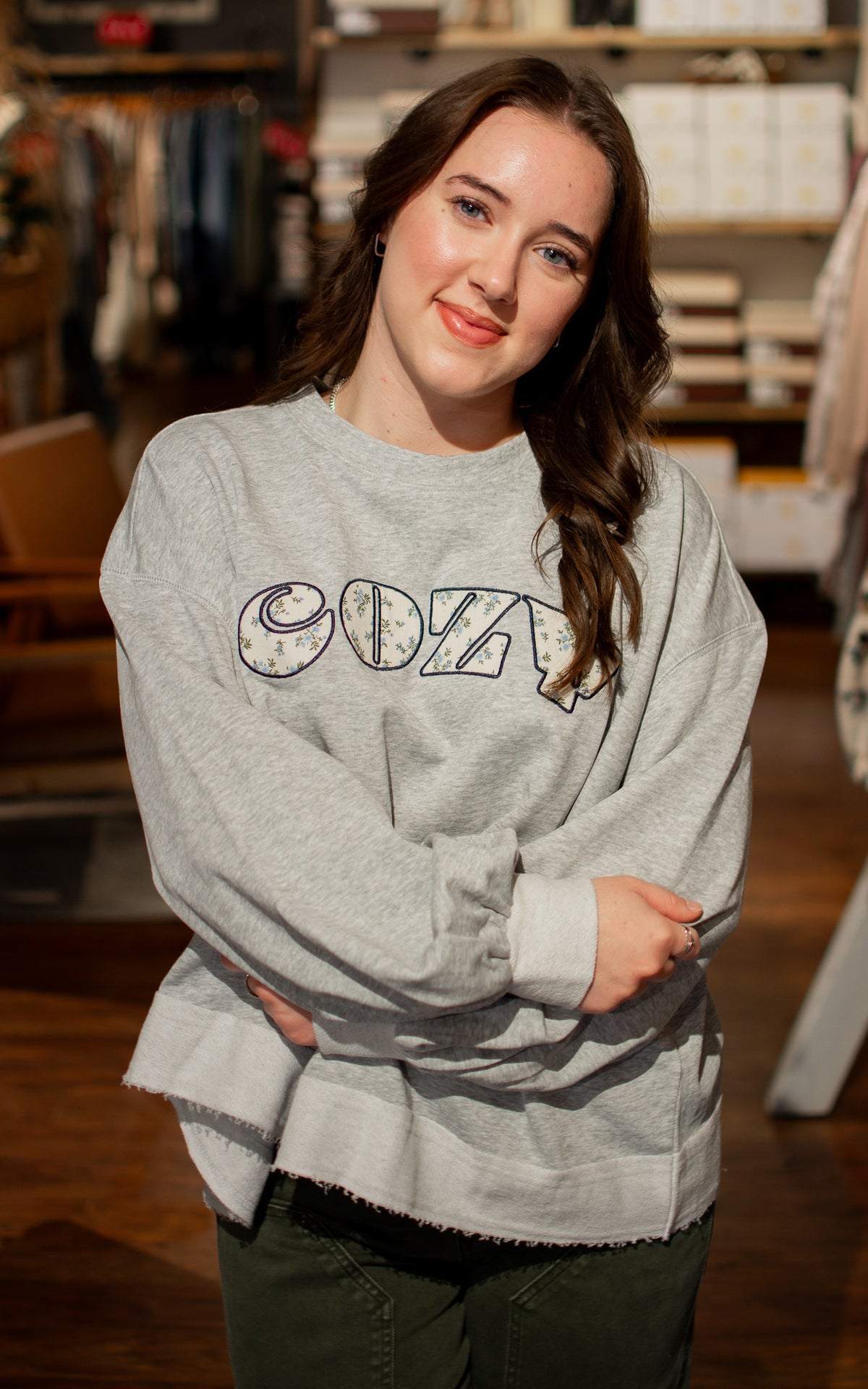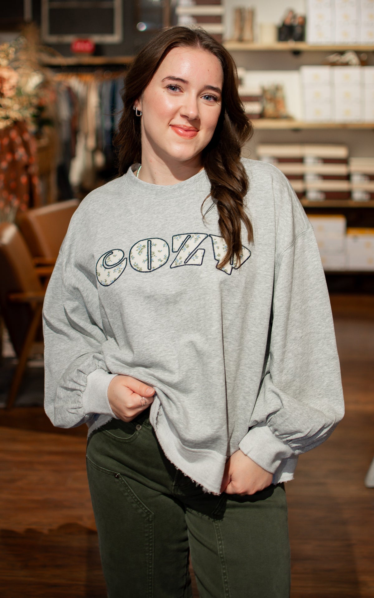 Slip into the Cozy Patch Crew Sweatshirt, available in soft grey or warm tan. Featuring a classic crew neck, snug cuffs on the wrists, embroidered cozy in floral, and a flowy hem, this playful sweatshirt offers just the right mix of comfort and flair for everyday fun. Perfect for lounging or stepping out with a relaxed vibe!