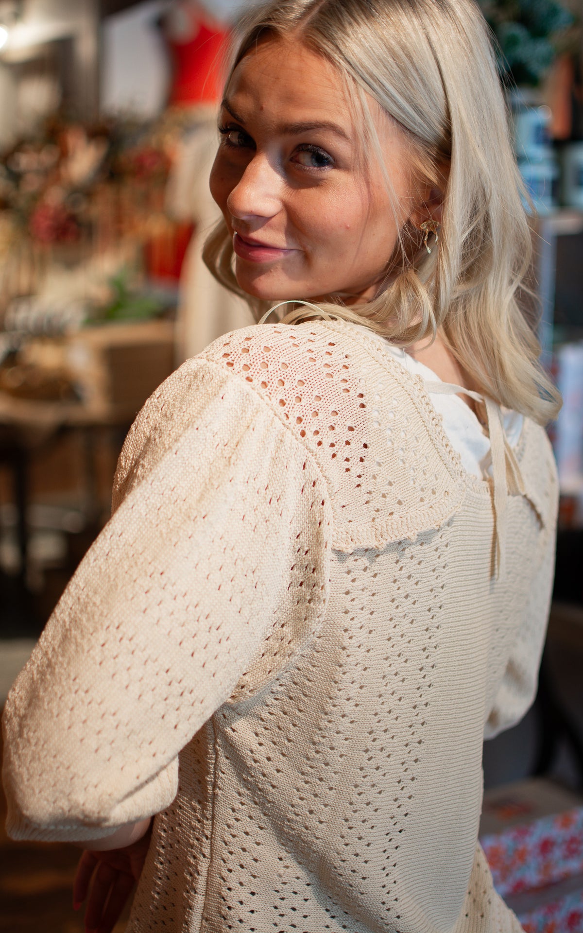 The Cutesy Crochet Top combines lightweight crochet with playful half sleeves for a breezy, charming look. Perfect for sunny days, it adds a sweet and stylish touch to your casual outfits.