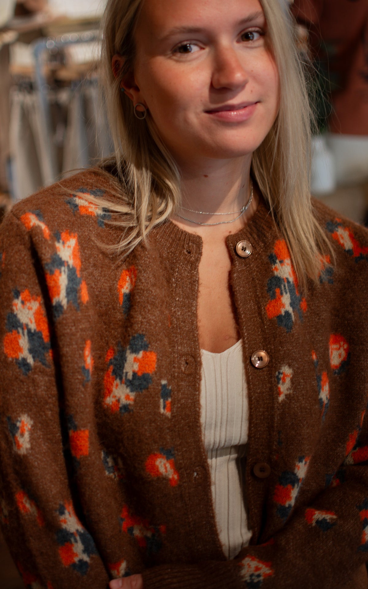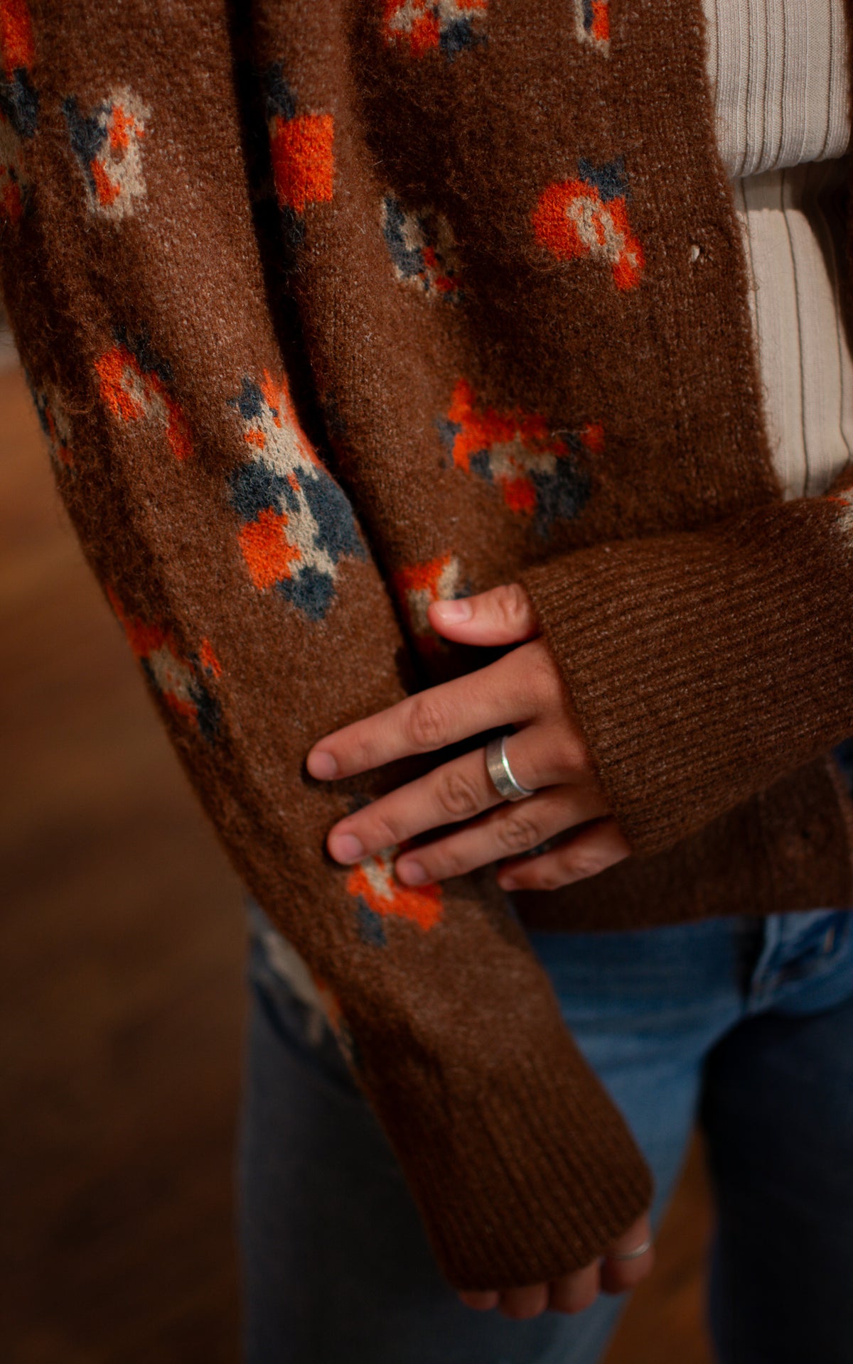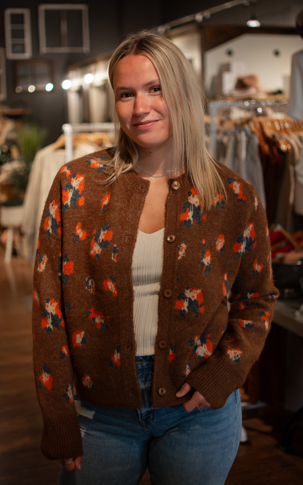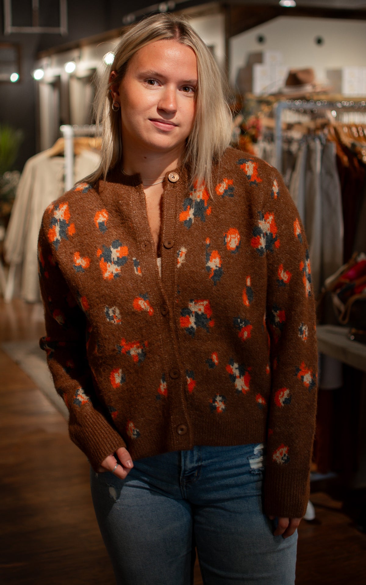 Wrap yourself in cozy nostalgia with the Edith Vintage Cardigan! This brown cardigan gets a playful twist with a bright floral pattern that adds the perfect pop of color—think grandma’s sweater, but way cooler. It’s your new go-to for comfort and charm in one stylish package.