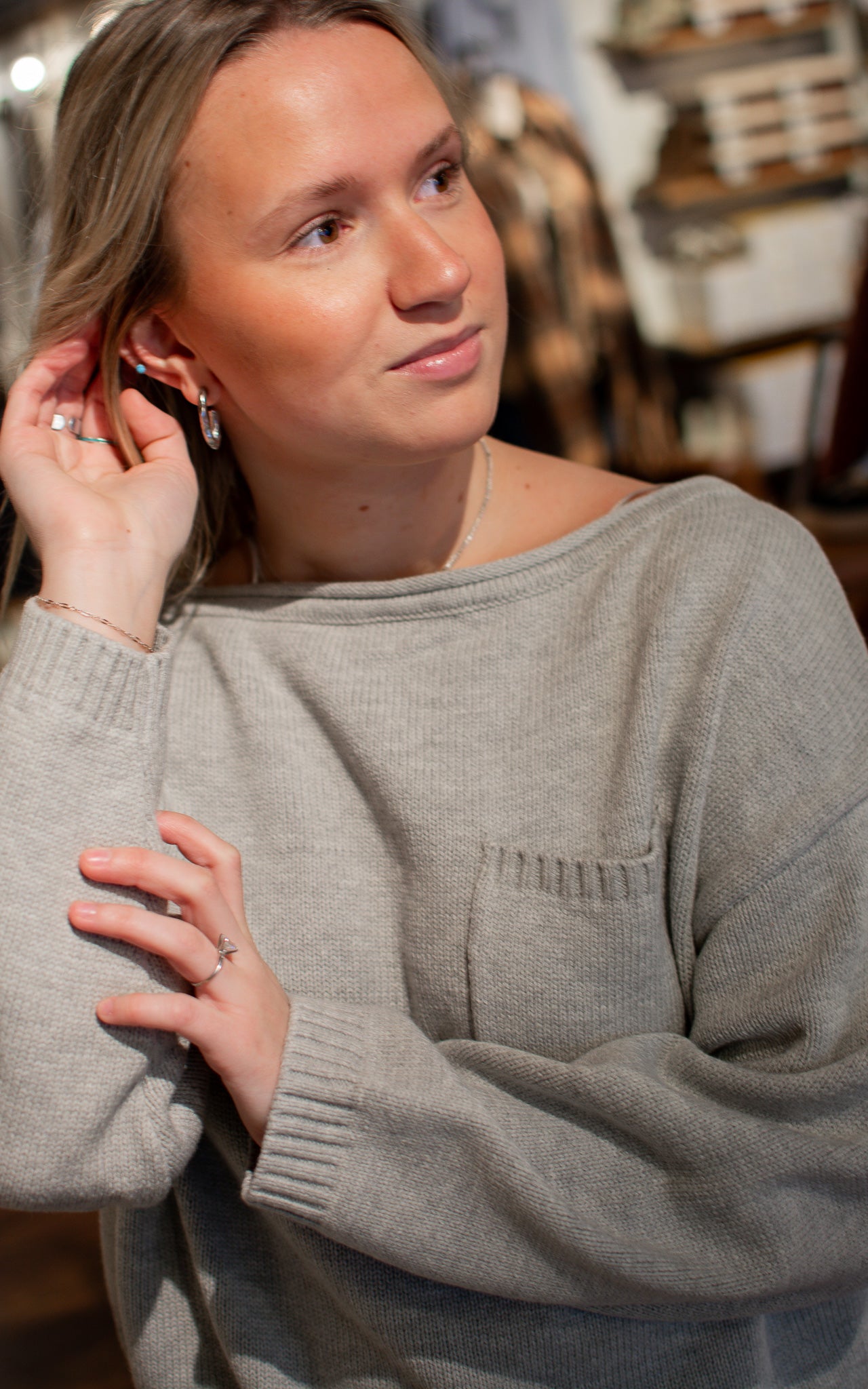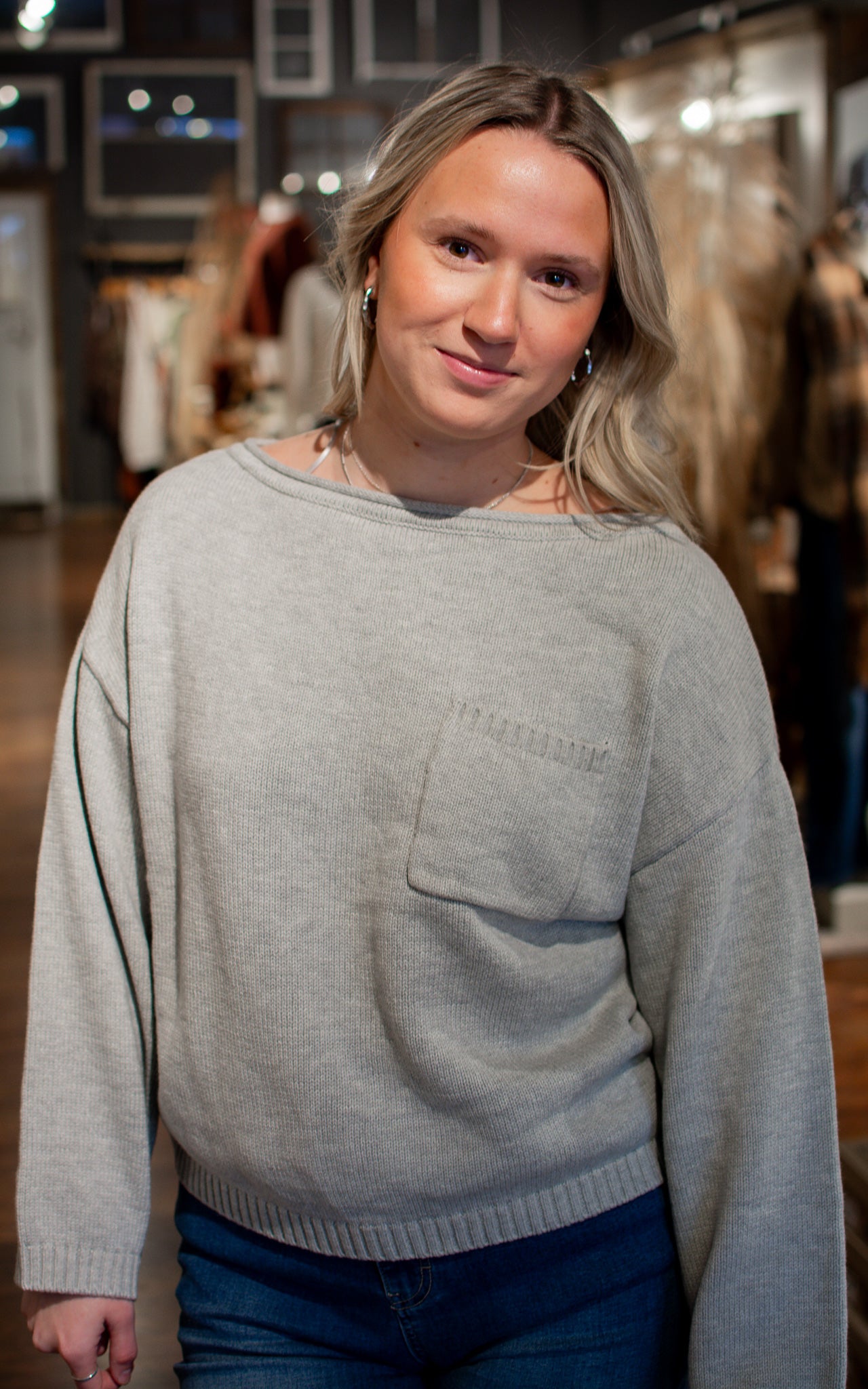 Meet the Grey Mist Slouchy Sweater—your new go-to for effortless cool. The boat neck design sits just right, offering a flattering neckline that works for everyone. Soft light grey keeps things neutral and easy to style, while the slouchy fit gives you that relaxed, lived-in comfort. Throw it on and feel instantly put-together, no fuss required.