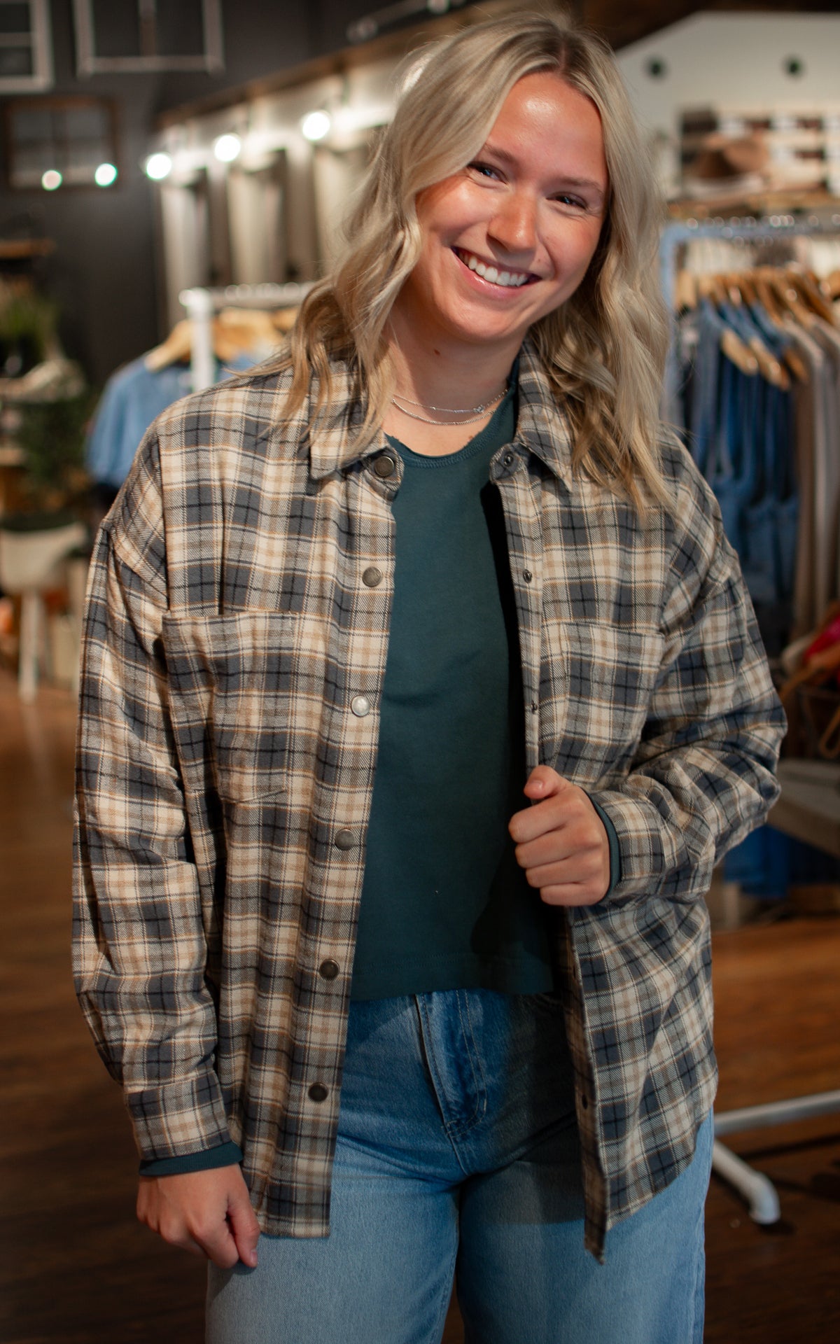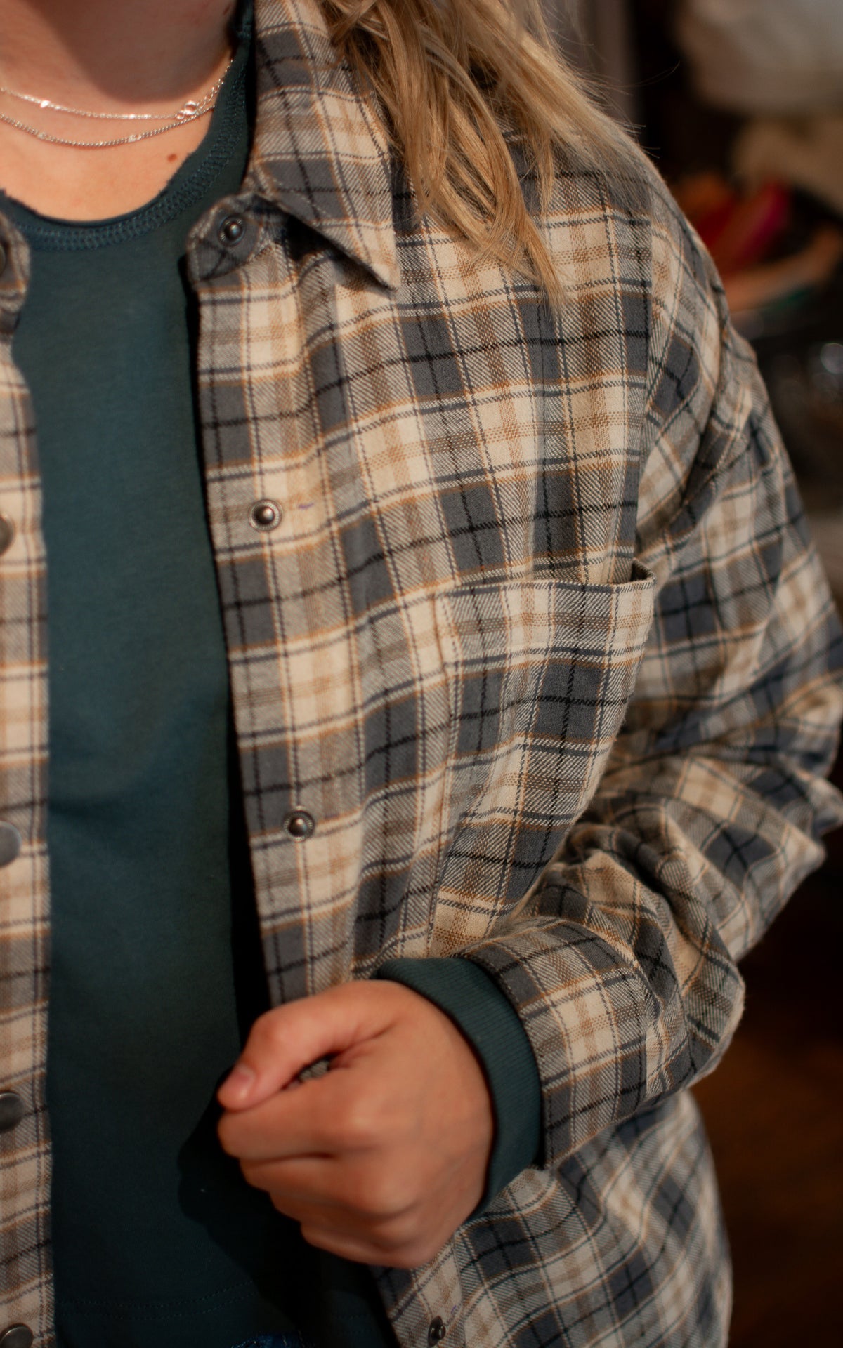 Add a splash of fun to your wardrobe with the Iced Out Flannel Shirt. This cozy blue and tan flannel features easy snap closures for quick, playful style on the go. Perfect for layering up with a wink and a nod to classic cool.