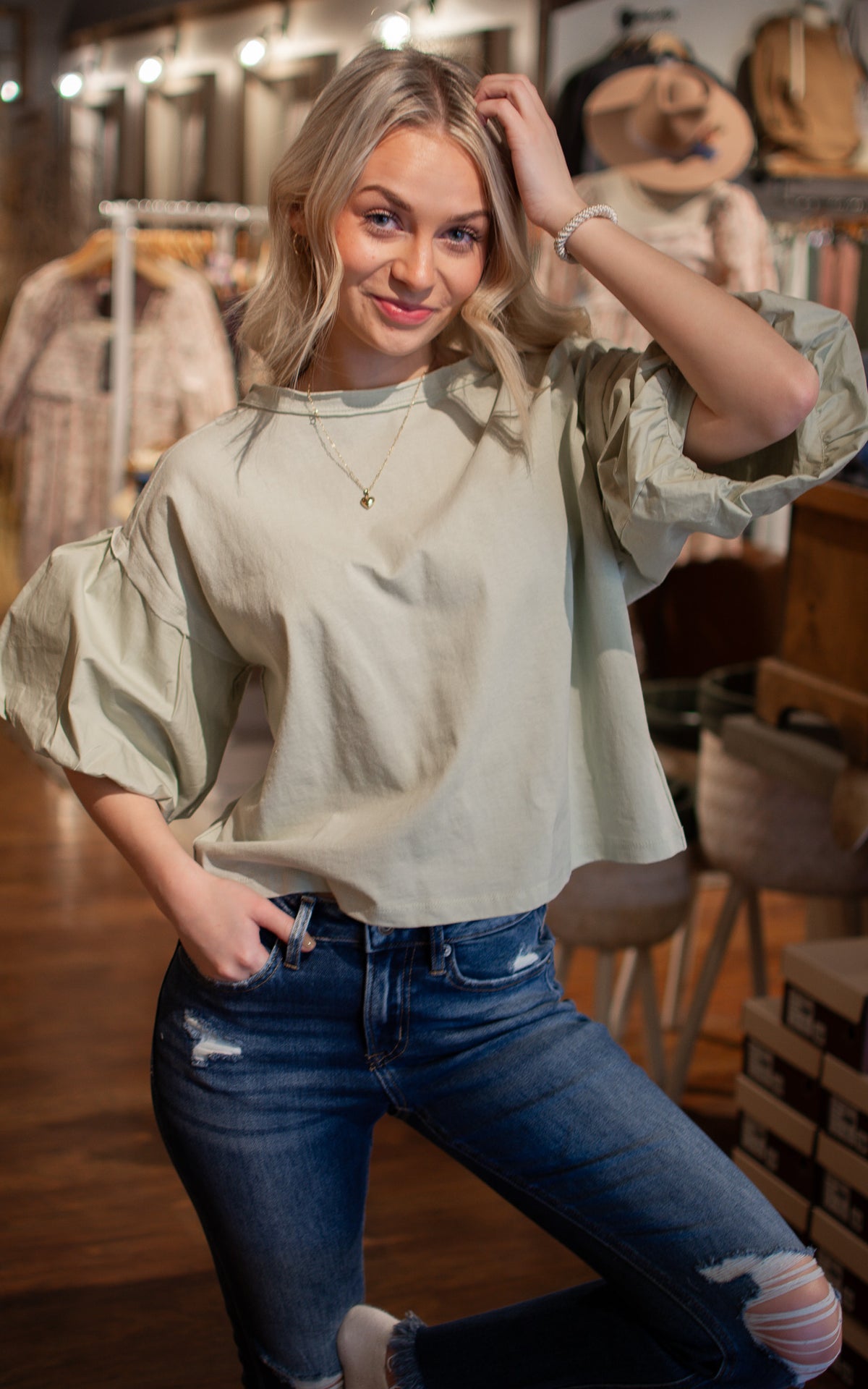 Get ready to make a statement with our I'm Dramatic Cotton Top! With its drop puff sleeves and stylish sage color, you'll be sure to turn heads wherever you go. This top is perfect for adding a touch of drama to your wardrobe.
