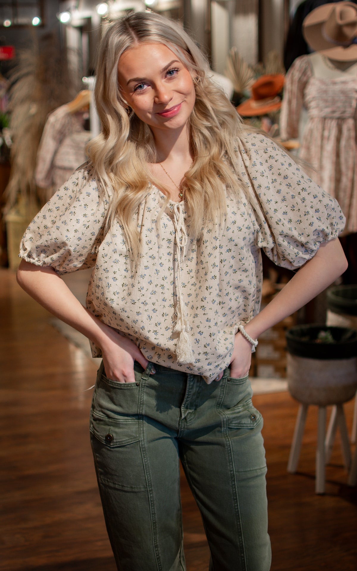 Flirt with fashion in our Love Me Blue Puff Sleeve Top! With its charming blue floral print and playful puff sleeves, this top is sure to turn heads. Cute and quirky, it's perfect for adding a fun touch to any outfit.
