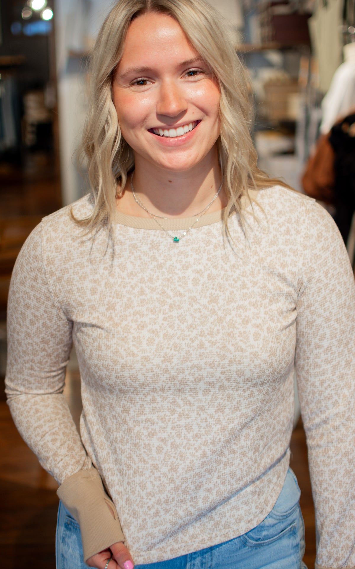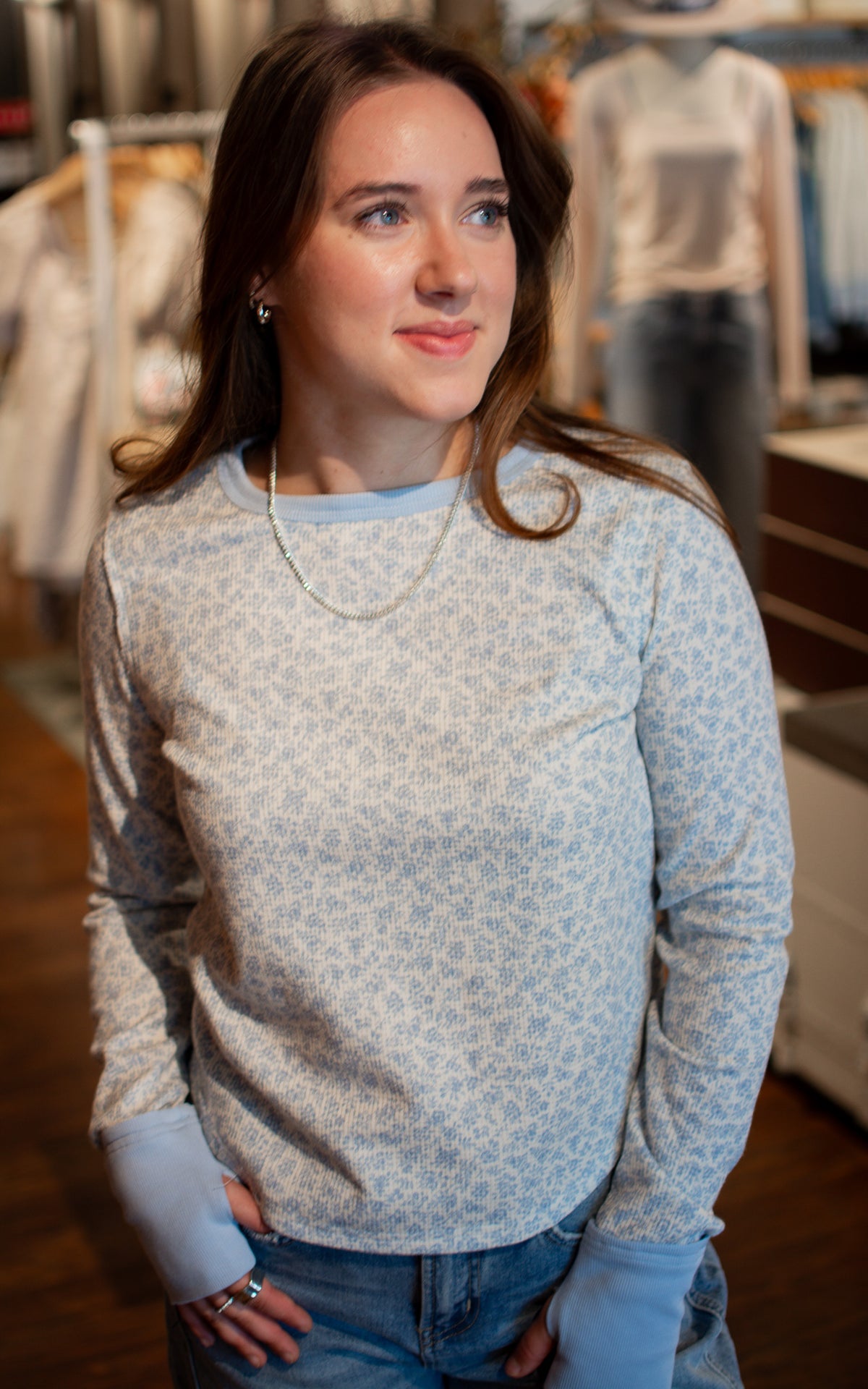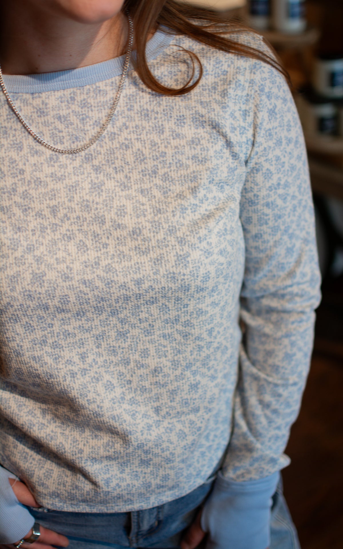 Get ready for fall with the Manchild Knit Long Sleeve Top! This cozy thermal features darling small floral bunches, thumbholes for extra comfort, and solid cuffs to keep the chill out. It’s the perfect playful layer to welcome the cooler days ahead.