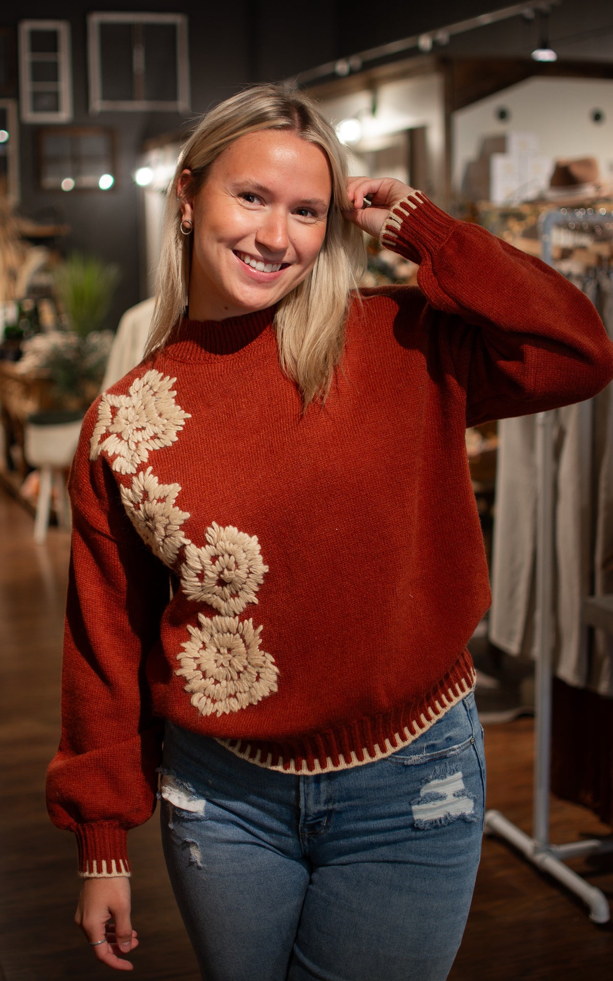 Celebrate fall in style with the Moana Floral Sweater! Featuring a rich rust color and a charming floral pattern on one side, it’s the perfect pick for Thanksgiving, pumpkin patches, or family photos. Cozy and playful, this sweater brings warm vibes and festive flair to your autumn adventures.