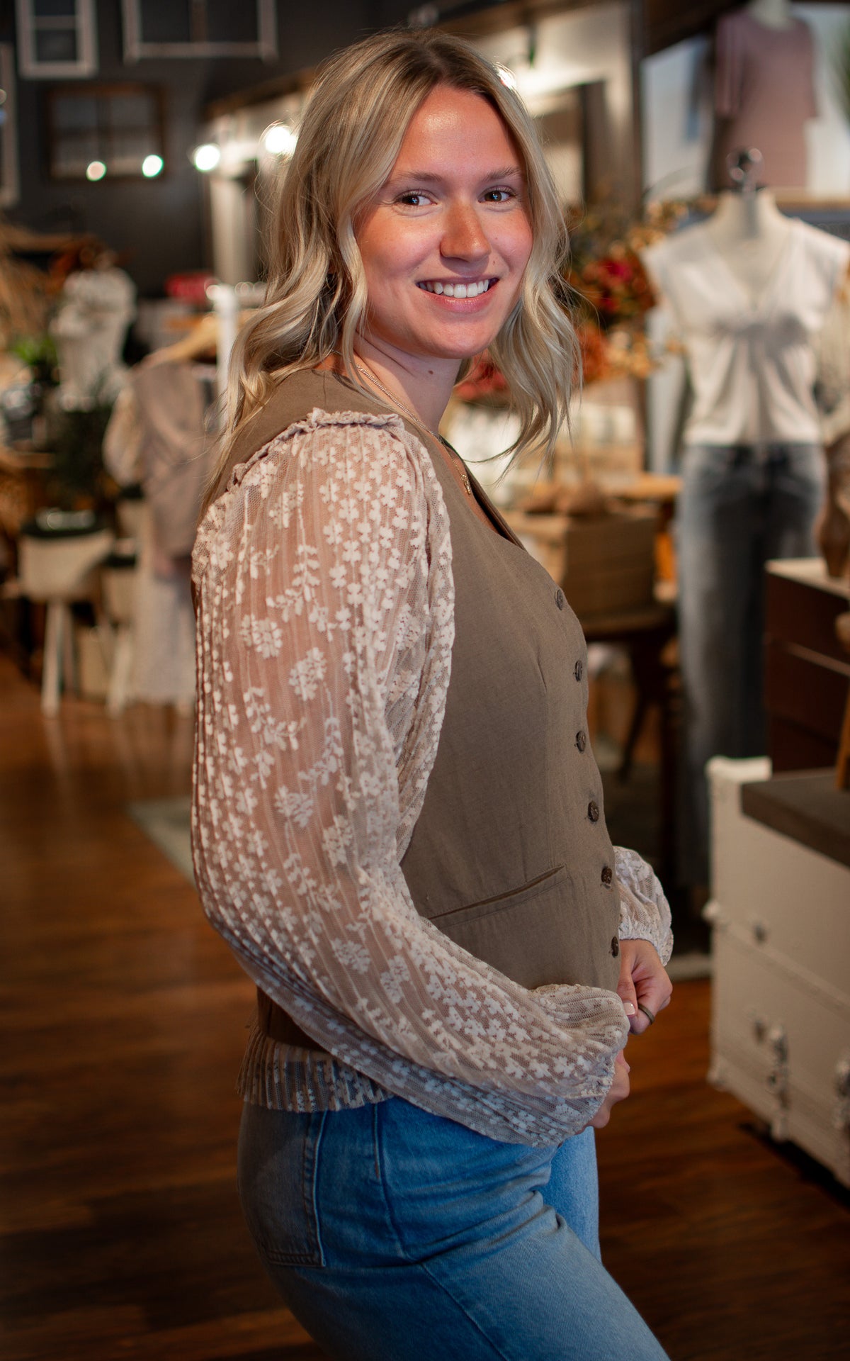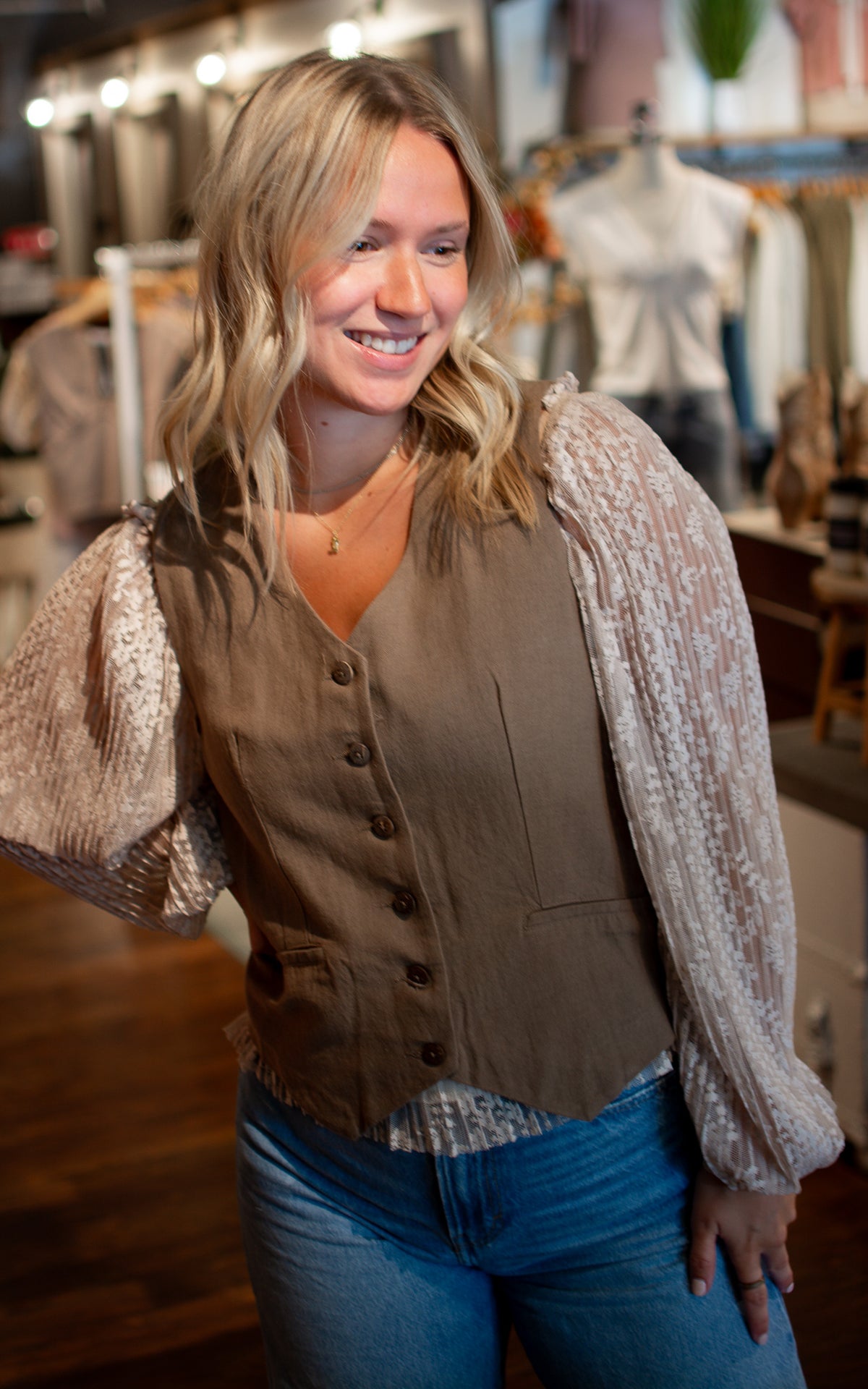 Add a splash of cozy charm to your fall wardrobe with the Mochaccino Linen Vest. This mocha brown button-up is your new favorite layering buddy, effortlessly blending comfort and style. Whether worn over a tee or under a jacket, it’s perfect for those crisp autumn days when you want a little extra warmth and a lot of fabulous flair.