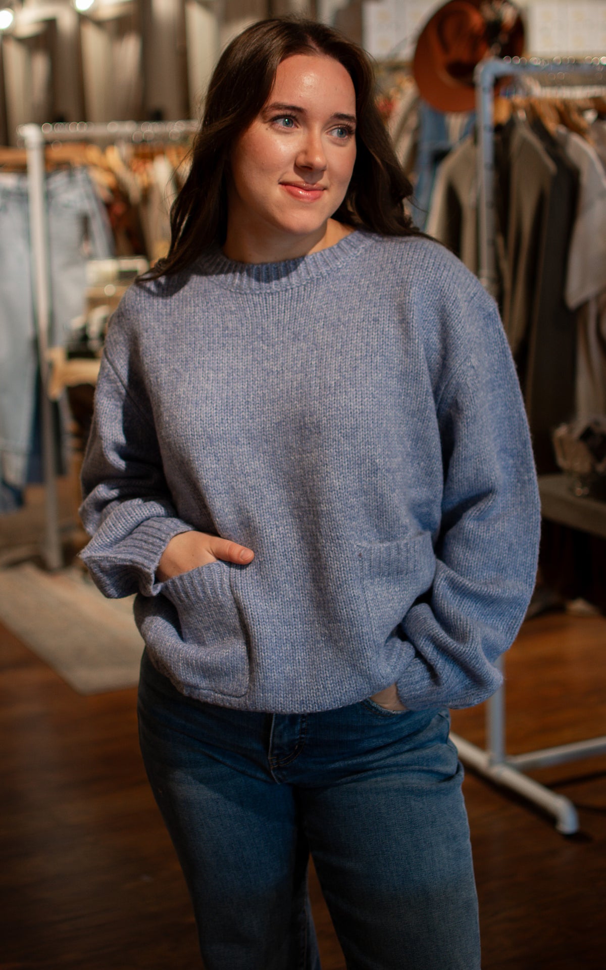 The Off The Cuff Sweater blends simple, classic style with playful comfort. Available in light blue or brown, this cozy sweater features handy pockets, making it perfect for keeping your essentials close or warming your hands. Its timeless design ensures it pairs effortlessly with any casual look while adding a fun, relaxed vibe.