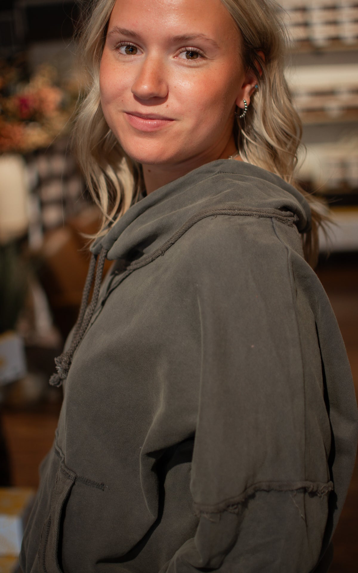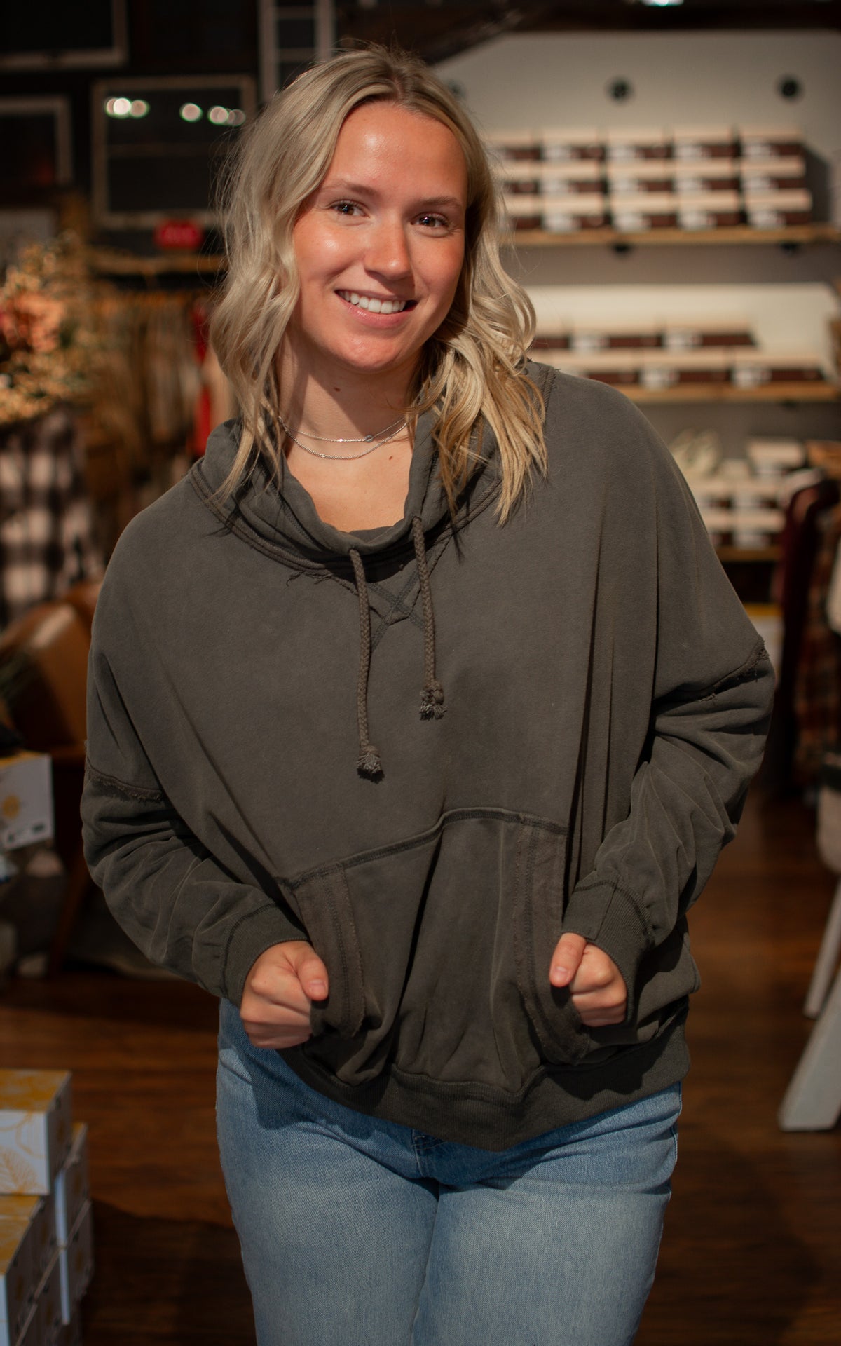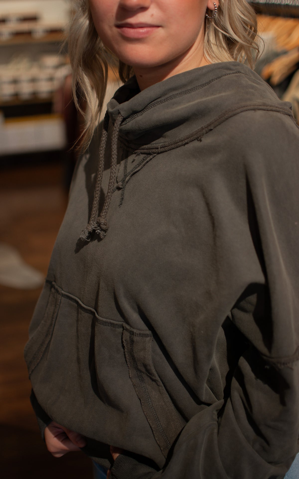 Stay cozy and cute in the Pilates Girl Sweatshirt. This grey mock hoodie is perfect for cool days, adding a playful touch to your casual wardrobe while keeping you comfortably warm.