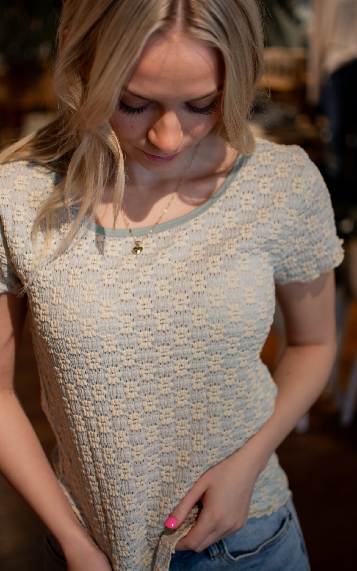 Make a splash with our Swimming In Lace Top! This darling top features a stretch lace material that hugs your waist for a flattering fit. The semi-sheer design adds a touch of allure, while the beautiful blue and soft yellow hues bring a playful pop of color. Dive into style with this top today!