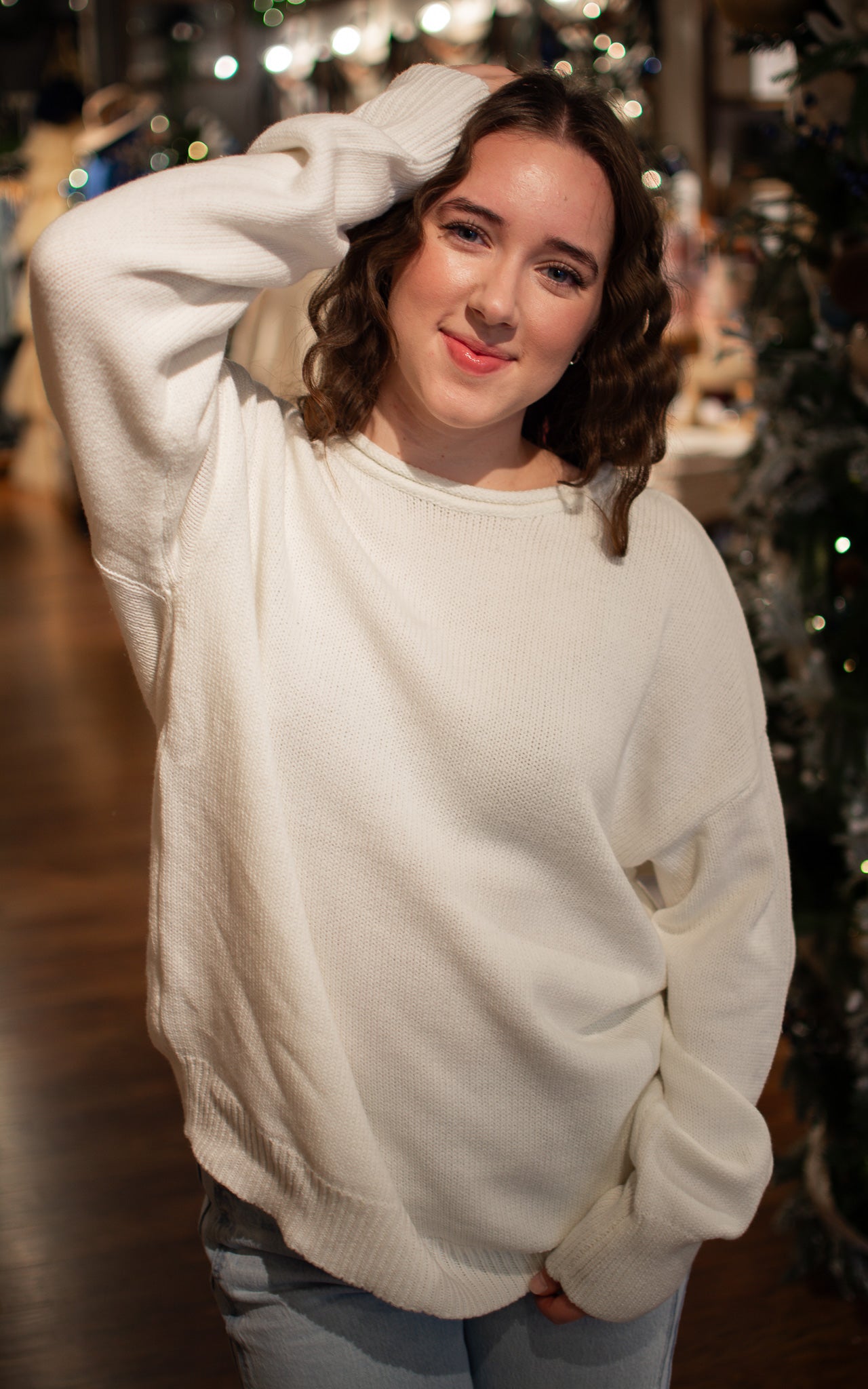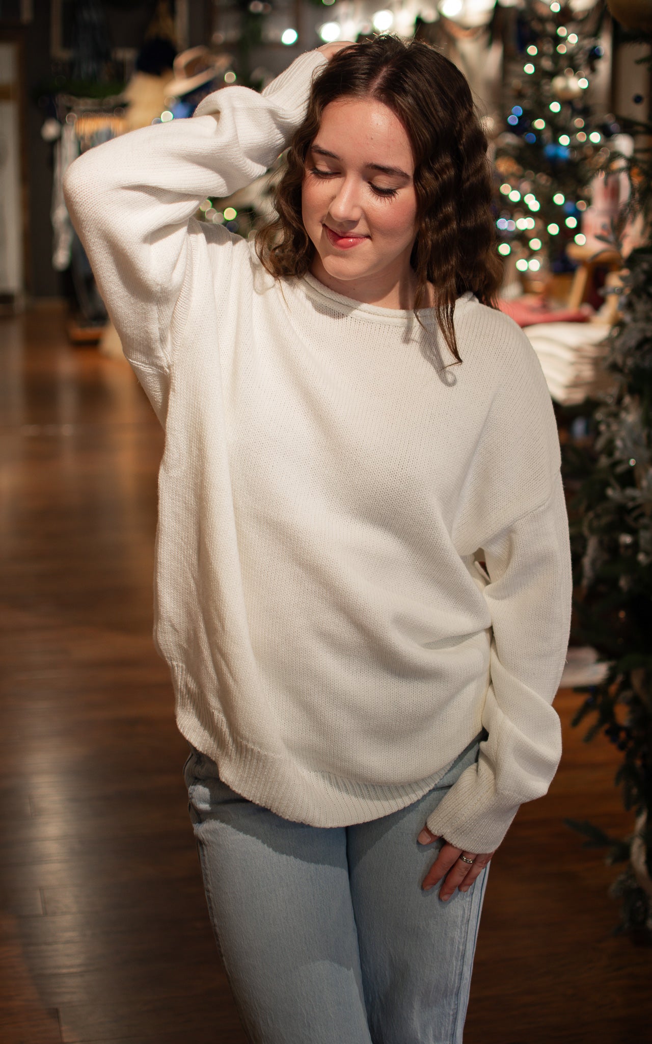 Meet your new wardrobe essential—the Vanilla Cream Sweater. This slouchy white knit is the cozy hug you didn't know you needed, perfect for those days when comfort is non-negotiable. The relaxed fit drapes beautifully, giving you that effortlessly cool vibe without sacrificing warmth. Layer it over basics, pair it with your favorite jeans, or throw it on solo for instant style points. Soft, versatile, and undeniably chic, this sweater is the kind of piece you'll reach for again and again. Don't sleep on this must-have addition to your closet.