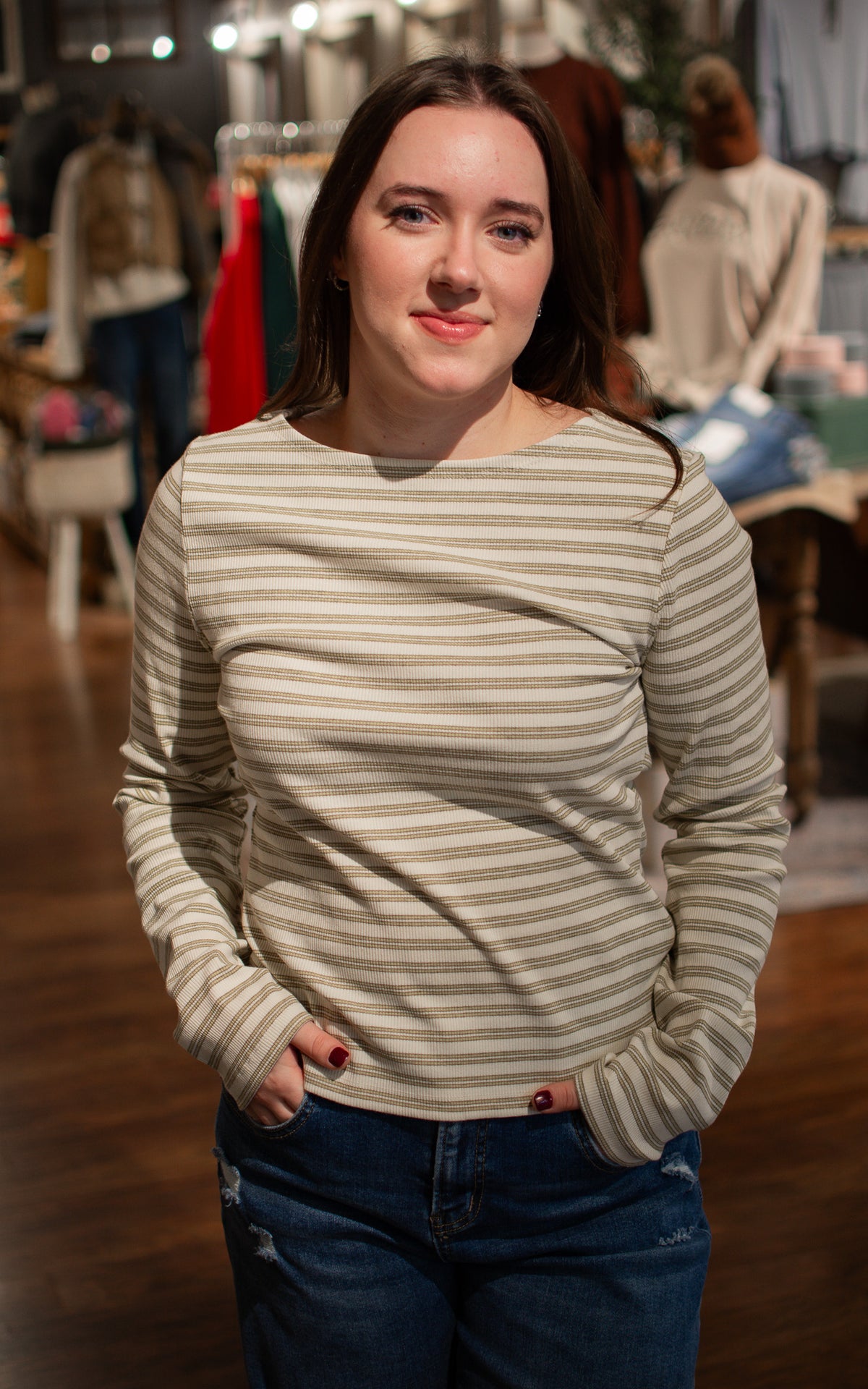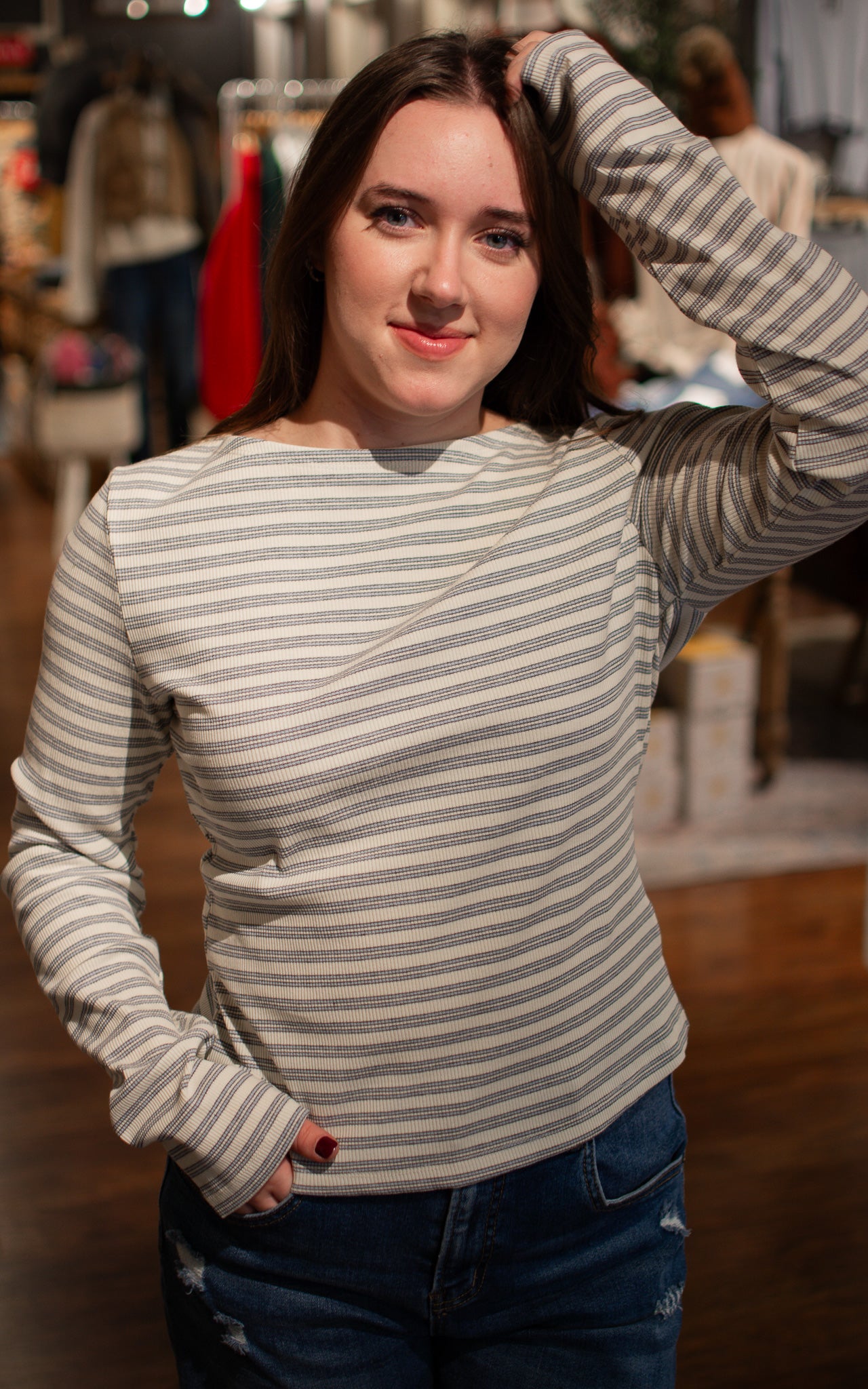 Channel retro charm with this classic boat neck long sleeve available in crisp white with cheerful yellow stripes or fresh white with bold blue stripes. The timeless striped pattern brings vintage vibes while the boat neck silhouette flatters every frame with effortless elegance. Pick your favorite color combo and get ready to turn heads—this playful piece proves that sometimes the best style moments come straight from the classics.