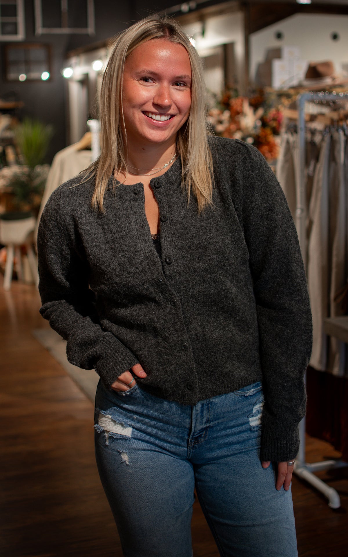 Meet your all-season MVP—the Winters Coming Cardigan! This dark grey classic is cozy, versatile, and ready to become your go-to layer no matter the weather. Whether it’s a chilly morning or a breezy evening, this must-have cardigan adds a playful touch of comfort to every outfit.