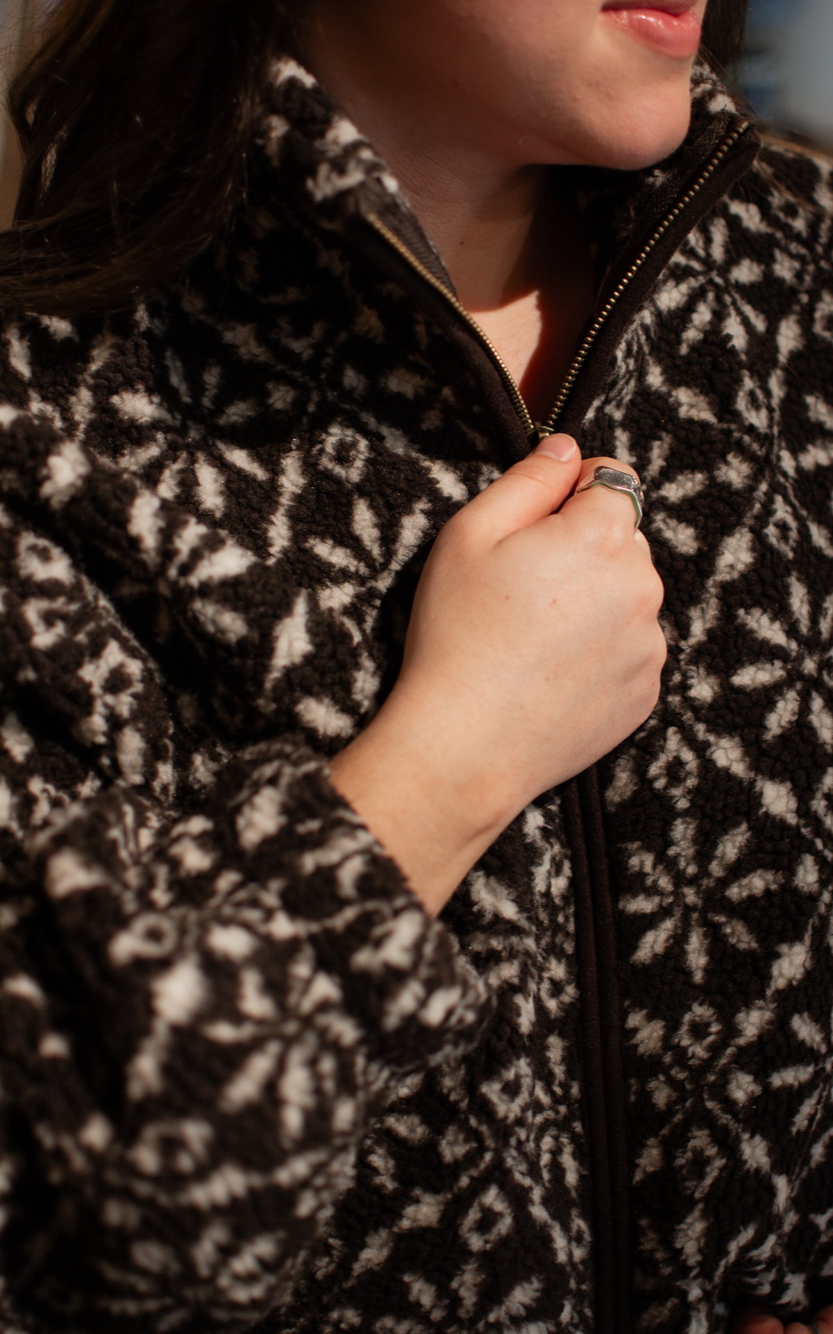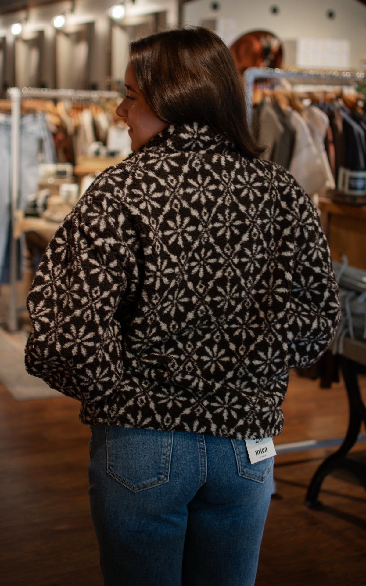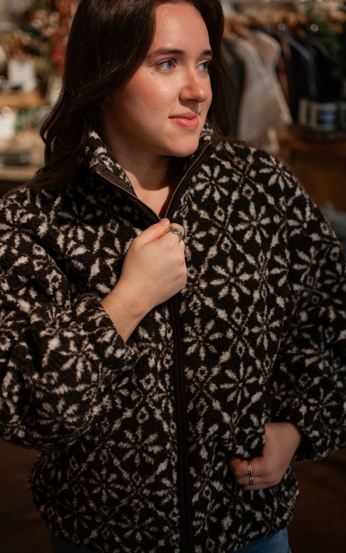 Cozy up the playful way with the Winters Coming Sherpa Jacket! Thick and warm, this full-zip jacket features a charming floral pattern that brings a fun twist to chilly days. Perfect for staying snug without sacrificing style, it’s your new go-to for winter adventures.